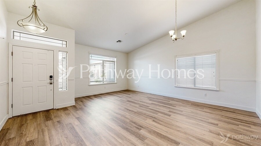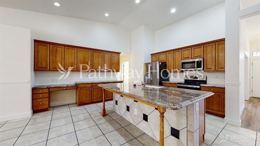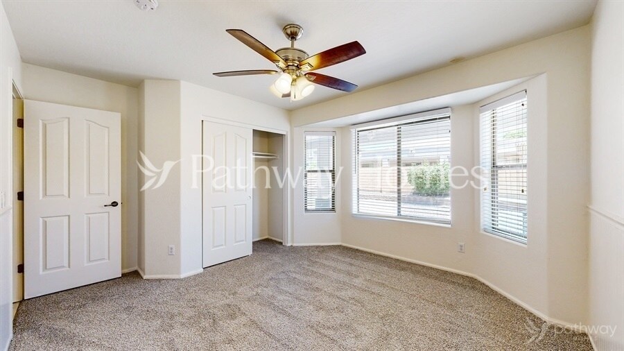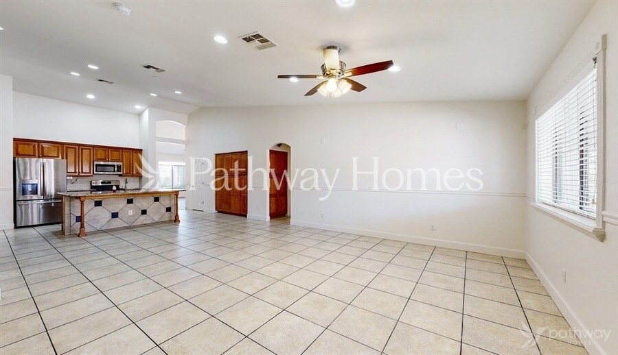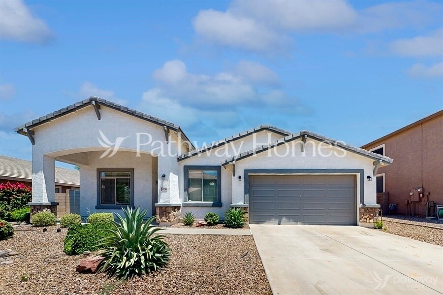 Coming soon! Apply online or call us at to learn more! This home is expected to be available in October 2025. This 2,442 sq. ft., 3-bedroom, 2-bath home offers modern living with high ceilings, a spacious kitchen featuring granite counters, stainless steel appliances, and ample cabinetry. The master suite boasts a walk-in shower and closet, while secondary bedrooms provide comfort with plush carpeting. Enjoy built-in shelving in the living area, a 2-car garage, and both front and back covered patios. The fenced backyard with desert landscaping makes this home a perfect blend of style and comfort. *This home does not have an option to purchase. This home can only be rented through Pathway Homes. Pathway Homes will never ask you to wire money or pay with gift cards. Please report any fraudulent ads to Pathway Homes .