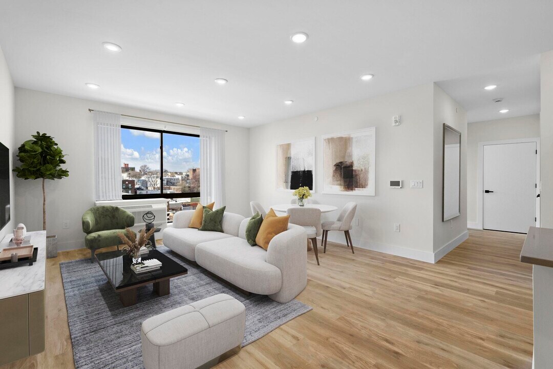 Welcome to 431 62nd St, The Harrison - located in the heart of West New York. This boutique elevator building features 48 luxury residencies with seven unique floor plans of one and two bedroom homes. Each unit provides an ultra modern kitchen with LG stainless steel appliances, washer/dryer, custom wood cabinetry, and walk-in closets. These sleek, elegant finishes with open layouts, and oversized windows overlooking the Manhattan skyline allow a flood of natural light. Easy, 24 hour transportation to NYC makes this location perfect for commuters. You’ll also have an abundance of local restaurants, bakeries, shops, and bars just outside your door. Covered parking as well as EV parking is available as well as bicycle storage. Additional storage is also available within the building. Outside you’ll enjoy the landscaped terrace space and lounging furniture as well as a dog park for any of your furry friends! WE'D WOULD LOVE TO SHOW YOU AROUND, PLEASE CALL US TODAY! * pictures from similar virtually staged unit*.