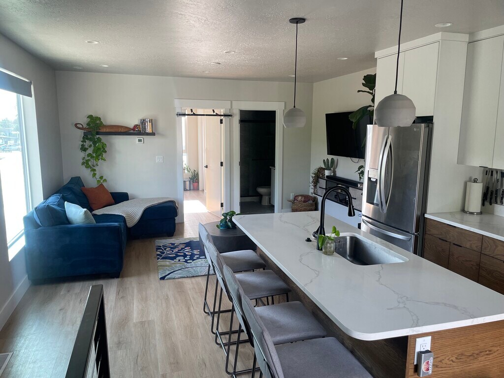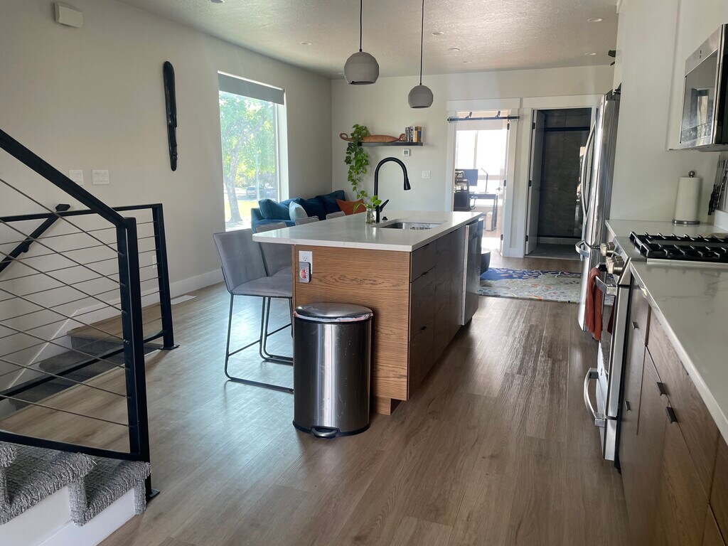 Location, location, location. This Sugarhouse townhome, completed in June 2021, is centrally located near all your favorite Salt Lake City destinations. In just 4 minutes, you can access I-15 or I-80, and within walking distance, you'll find popular restaurants and grocery stores, including Trader Joe's and Smith's. Situated at the end of the building, the unit enjoys south-facing sunlight and some of the best views in the complex. While 2100 S borders the south side, full sound insulation installed during construction ensures peace and quiet so noise from the road or neighbors is not a concern. This 3 bed, 3 bath unit features tall ceilings, a full set of great amenities (washer, dryer, central AC and heating, stove, oven, microwave, and fridge), and plenty of storage space. The 30-foot garage can fit 2 small cars stacked or 1 car (& a lot of gear/activity area), in addition to street parking beside the units. By the front door is an exterior bike locker/more storage. A rooftop deck awaits you after a long day to witness sunsets over the valley and full Wasatch mountain views. The unit can be rented partially furnished, or unfurnished. Move-in: 02/01/2026. We offer a standard one-year lease. Adjustments can be made on a case-by-case basis, pending a conversation. Virtual walkthrough (delete spaces within link): https www. you tube. com / watch?v=PppopLjaAH0&t=3s&ab_chan nel=AdamEisenbarth