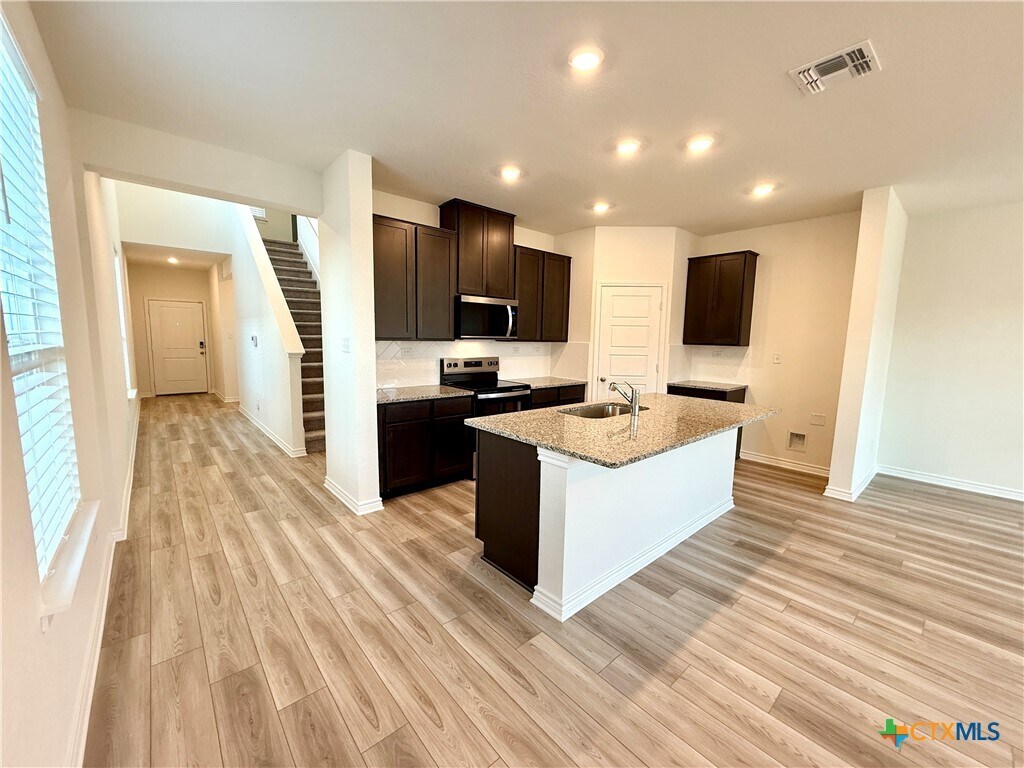 Welcome home to this BRAND NEW 4 bed,2.5 bath,two story home in popular Woodside Farms! Fresh sod installed in the front & back yard. Upon walking in the front door- you're met with tons of natural light & 9 foot ceilings! Offering 2500+ sq ft,this home has it all! Ceiling fans & blinds! Open living and dining with canned lighting throughout. Gorgeous granite countertops in kitchen with center island and Daltile backsplash,makes this home perfect for entertaining. Stainless appliances including electric range,microwave,and dishwasher. Primary suite conveniently located downstairs. Upstairs features 3 bedrooms with walk-in closets,plus a second living and landing area upstairs. Full bath with shower/tub combo. Primary suite offers a full bath- a beautiful glass stand-up shower with Daltile surround,double vanity sink,water closet & a large walk-in closet. Gorgeous vinyl plank flooring throughout- carpet in all bedrooms & upstairs. Laundry room is conveniently located downstairs. 2 Car Garage with opener! Community offers a park/playground and pond. Pets are a case by case basis depending on age,weight,and breed. Monthly pet rent & refundable pet deposit is required. Tenant is responsible for all utilities and lawn care.