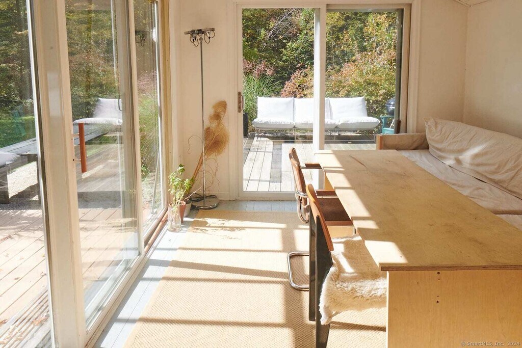 Call for Availability - Enchanting Cottage with Lake Rights in Idyllic Kent Nestled amidst the serenity of land trust property with deeded rights to North Spectacle Lake, this cottage is a haven for nature lovers and water enthusiasts alike. The heart of this home is its open floor plan, where original wood floors meet high ceilings in the living room, creating an airy and inviting atmosphere. Large windows frame the natural beauty outside and a wood-burning fireplace adds a touch of rustic elegance. JUNE/JULY/AUGUST $3,500 A MONTH. The kitchen, a blend of functionality and charm, opens through French doors onto a spacious deck. Here, a comfortable sitting area and large dining table await. The home's thoughtful design extends to a seasonal private office above the garage, offering a secluded, seasonal workspace. Located just seven minutes from vibrant downtown Kent, residents enjoy easy access to top-tier schools, acclaimed restaurants, The Morrison Gallery, RTFacts, and Peggy Mercury to name a few of Kent's rich cultural scene. For further exploration, the chic boutiques and eateries of Washington Depot and scenic Lake Waramaug are a short drive away. At 990 square feet, this intimate retreat is ideal for a couple or individual seeking a peaceful lakeside lifestyle. Move-in date After April 14th. JUNE/JULY/AUGUST $3,500 A MONTH. MLS# 24157728
