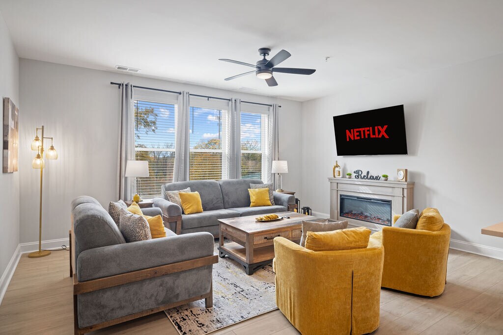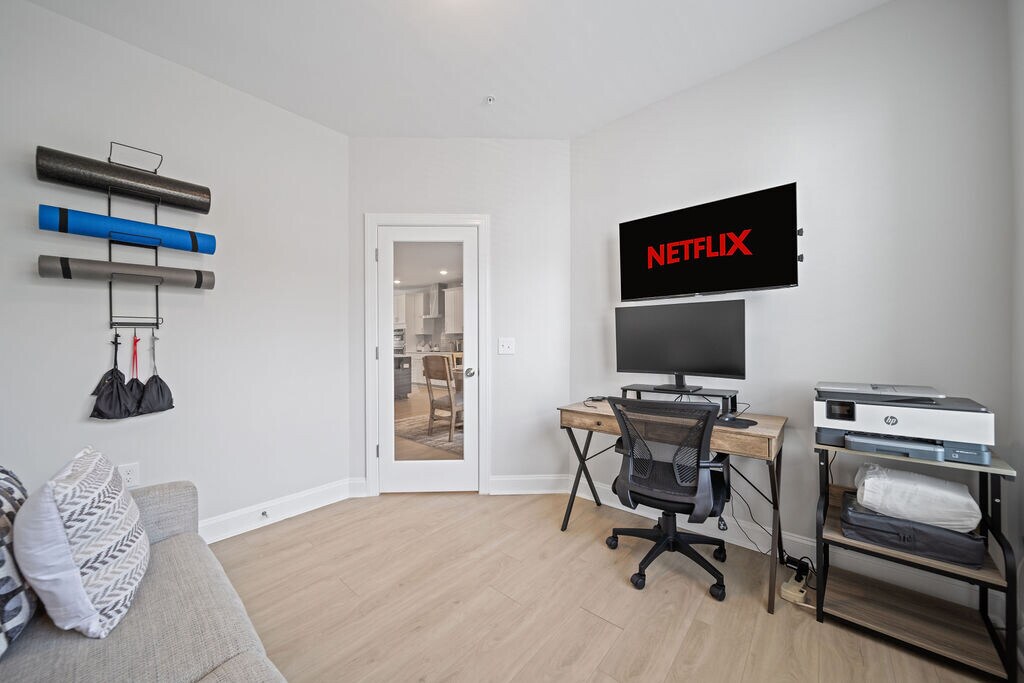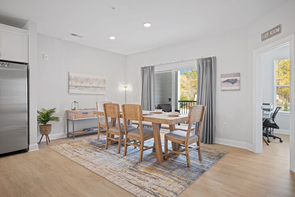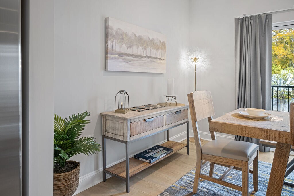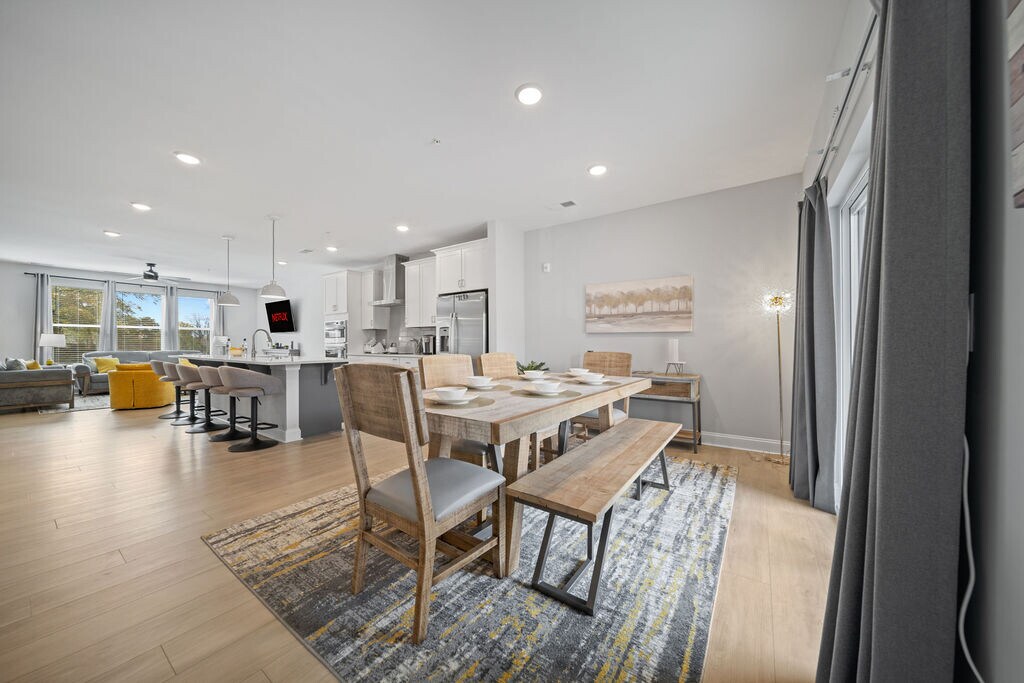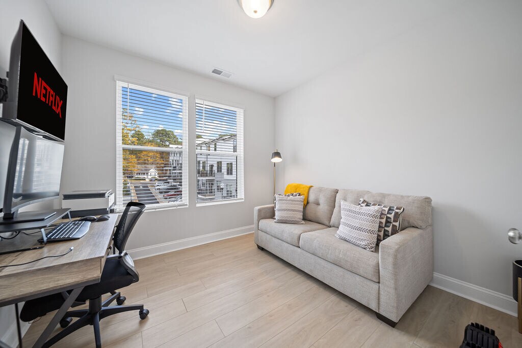 Beautifully decorated and furnished 4 bedroom, 2 ½ bathroom luxury condo located off Wait Avenue in downtown Wake Forest! Some of the highlights of our property include: • Few minutes walk to downtown! • Enjoy multiple living spaces over 4 levels • Spectrum Fiber Internet provided (300 mbps) • ChargePoint Level 2 EV charger in the garage • Rooftop Terrace overlooking downtown Wake Forest with outdoor firepit, sectional sofa, Polywood dining set for 6, and cornhole boards • Spectrum Cable TV streaming provided in every room • 4th bedroom flex space with full-size sleeper sofa that can be utilized as additional bedroom, office, or exercise room • New fitness equipment provided including yoga mats, resistance bands, and 5-55 lb adjustable dumbbells • Dedicated workspace with 32" LG monitor, keyboard/mouse, WiFi-enabled inkjet HP printer, and docking station compatible with PC and Mac devices Overview of Sleeping Arrangements: • Bedroom 1: Master King Bed with ensuite full bathroom and tiled shower • Bedroom 2: King Bed • Bedroom 3: Twin-over-Queen Bunk Bed • Bedroom 4: Flex room with workspace and full-size sleeper sofa Note that stairs are required to access each level of the condo. There are no elevators on the property. Date Available: Feb 1st 2026. $3,500/month rent. $1,750 security deposit required. Please submit the form on this page or contact Cara at to learn more.