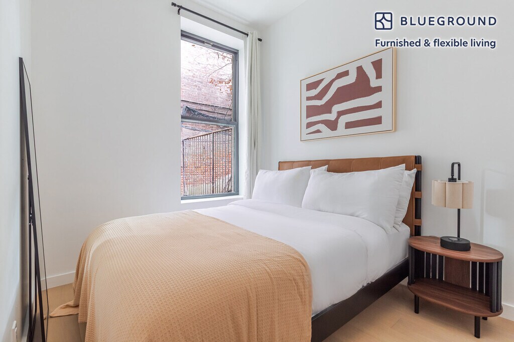 Feel at home wherever you choose to live with Blueground. You’ll love this spacious Southside furnished two bedroom apartment with its modern decor, fully equipped kitchen, and cheery living room. Ideally located, you’re close to all the best that New York has to offer! (ID #NYC2082) The advertised rate of $3,120/month is the lowest available price, based on a 1 month(s) and 3 day(s) stay with a move-in date of January 16, 2026. If you’re looking for a 1-year stay, the rate is $5,690/month. Rates vary depending on the duration of stay, season, and other parameters. For exact pricing and additional pricing components, please visit our website and enter your desired move-in and move-out dates. The rate is applicable when billed upfront; it can be higher if billed in multiple payments. Brokers are welcome to reach out. Were you looking for an unfurnished lease? Try Blueground instead and upgrade from unfurnished to furnished living: - Furnished at rates comparable to unfurnished - No setup or furniture costs - save thousands - Move-in ready - save time, just bring your suitcase Designed with you in mind As with any Blueground apartment, you’ll find a thoughtfully designed space complete with beautiful furniture and a fully equipped kitchen in this two bedroom property. And, thanks to our superior quality mattresses, luxury linens, and towels, you can relax knowing you’ll always feel comfortably at home. When you’re ready for some fun, you can take in the New York vibes or bring the entertainment to you with the premium wireless speaker or smart TV. This apartment also offers in-apartment laundry. Sleeping arrangements Queen Bed, 63in/160cm Amenities Building amenities unique to this two bedroom apartment include an on-site: - Dryer - Washing machine - Pets allowed Arrival and ongoing support The entire apartment is yours to enjoy! Throughout your stay, you’ll have access to our Client Experience team through the Blueground App. You can schedule additional cleanings, submit maintenance requests, and view our neighborhood recommendations with just a few taps. We’ll share all details upon confirmation of your stay. Other things to note This Blueground apartment has flexible lease options, allowing you to book it for one month, a year, or more. Pets are welcome, though weight limits and breed restrictions apply and may incur fees. Please keep in mind that this is a walk up building. Brokes CYOF. We take great pride in ensuring every photo displayed is shot in our own units with our actual furnishings. That said, we regularly refresh our decor and furniture arrangement, which may differ from what’s pictured. [SI]