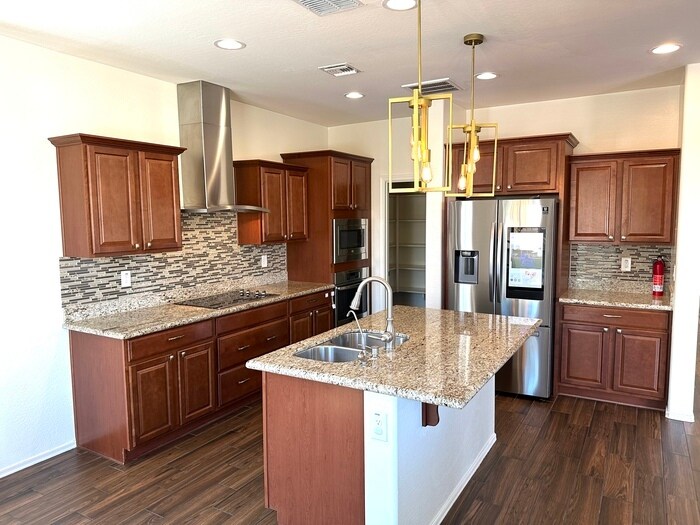 Stunning 4 Bedroom + office + bonus room + loft, 2.5 bath, Morrison Ranch property, in a highly desirable area of Gilbert. As you enter the home, you will enjoy the cathedral ceiling and staircase as well as the open formal dining room. The kitchen displays beautiful granite counter tops, an in-sink island, 42'' cabinets, a walk-in pantry as well as stainless appliances and an eat-in kitchen. You will love the ''wood plank'' tile flooring downstairs throughout all the high traffic areas as well as the double sized 4 panel arcadia glass door. 4 spacious bedrooms are located upstairs. The master bedroom has a walk-in shower and spacious walk-in closet. The secondary bedrooms have walk in closets. Back yard is stunning & easy to care for. Credit under 600 pays 1.5 times rent as security dep. Vacant. Email LA for any questions about property or status. $40 credit check/person over 18. Pets on approval. $200 initial admin fee, 2% per month admin fee. Apply & pay for credit check at RCH- ''tenant services'', ''Apply Now''. Credit under 600 pays 1.5 times rent as security. Contact us to schedule a showing.
