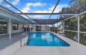 Discover the Florida lifestyle in this stunningly renovated 3-bedroom, 2-bathroom waterfront pool home in the Waterway Estates of North Fort Myers. Spanning nearly 1,900 square feet, this home boasts an open-concept layout, perfect for modern living, with a charming double-sided fireplace creating a warm ambiance. The gourmet kitchen features sleek stainless steel appliances, ample cabinetry, with a functional design. The primary suite is a true retreat, complete with direct access to the screened lanai and a beautifully updated bathroom. Two additional bedrooms offer plenty of space and comfort for family, guests, or a home office. Step outside to your private paradise with sparkling pool, spacious covered lanai, and waterfront canal views. Boating enthusiasts will appreciate the expansive boat dock, equipped with boat lift, floating dock, and kayak launch, providing seamless Gulf access with no bridges. Enjoy hassle-free living with pool and lawn maintenance included in the rent. Contact us to schedule a showing.