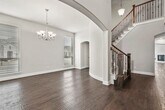 This stunning 3,500 sq. ft. home offers an exceptional floorplan with 4 bedrooms, 4 full baths, a dedicated study, a spacious gameroom, an impressive media room, and an inviting outdoor living space. Step inside to a dramatic entry with soaring ceilings and a grand curved staircase. The modern, chef-inspired kitchen features a large center island, upgraded appliances, and opens seamlessly to the soaring family room and light-filled breakfast nook—perfect for everyday living and entertaining. The luxurious first-floor primary suite includes a spa-like bath and generous walk-in closet. A convenient secondary bedroom suite and a sophisticated study are also located on the main level. Upstairs, enjoy a large gameroom, two spacious bedrooms, a full bath, and a fantastic media room designed for movie nights.Extensive hand-scraped hardwood floors, abundant natural light, and beautiful views of the greenbelt enhance the home’s warm, inviting feel. The outdoor living area provides a peaceful retreat with plenty of room to relax or entertain. Situated on a desirable corner lot in sought-after North Carrollton with excellent LISD schools. Vacant and shows beautifully—this is a must-see!