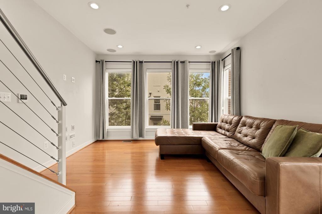 Welcome to 4333 Kennedy Street, Hyattsville, MD. This sunlit, three-bedroom, 2.5-bathroom end-unit townhome offers a sanctuary for those seeking both convenience and functionality. Upon entry, you'll find a versatile recreational space—perfect for a home office, living area, or a flex space to suit your changing needs. This level also features indoor access from the garage, complemented by a convenient coat closet. On the second level, expansive windows fill the space with natural light. A dedicated dining area leads to the updated kitchen, complete with stainless steel appliances. The open-concept living area extends onto a private deck, and a half bath on this floor adds convenience for guests. The third floor features two generously sized bedrooms and a spacious full bath with a large double vanity. The fourth floor is home to the luxurious primary suite—a true retreat boasting an en-suite bathroom, walk-in closet, and access to a private outdoor terrace. The outdoor furniture on the terrace can convey with the home. Situated in the vibrant Hyattsville Arts District, this residence is ideally located for commuters and city explorers alike. Enjoy proximity to local favorites like Busboys and Poets and Vigilante Coffee. Just a four-minute drive brings you to The Station at Riverdale Park, home to Whole Foods Market, Denizens Brewing Co., Starbucks, Gold's Gym, and a variety of exceptional dining options. This home is not just a place to live—it's a lifestyle waiting to be embraced. Discover the perfect balance of city convenience and elegant suburban charm at 4333 Kennedy Street.