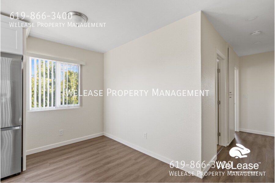 Introducing our newly renovated 2 bedroom, 1 bathroom apartment with an additional office/den space in the vibrant city of San Diego, CA. This modern unit features stainless steel appliances, perfect for those who love to cook and entertain. The office/den provides a versatile space for those who work from home or need a quiet area to focus. With a storage room included, you'll have plenty of space to keep your belongings organized. Don't miss out on the opportunity to make this stylish and functional apartment your new home. Contact us today to schedule a tour and see all that this unit has to offer. DEPOSIT: 1 month’s rent Sq Ft: Approx. 800 APPLIANCES: Stainless Steel refrigerator, stove, microwave, garbage disposal PARKING: 3 tandem parking spots LAUNDRY: Community laundry UTILITIES INCLUDED: water, sewer, trash LEASE LENGTH: initial term 16 months (or 8 months if preferred) YEAR BUILT/RENOVATED: 1973 PET RESTRICTIONS: Pet rent is $35 per pet, 25lb max. If you are applying with an emotional support animal or service animal, please provide the corresponding documentation. AVAILABLE: NOW Professionally managed by WeLease. Please visit the We Lease website to schedule a showing and to apply. | RENTAL CRITERIA -Strong Credit Score required -Collective household income 2.5 times the monthly rent -No prior evictions. -No balance owing past or present to: Utility company, property manager. -No excessive late payments to previous landlord or on credit report. -No recent criminal activity within the past 6 years. -Security Deposit is required to be paid in full within 24 hours of receiving approval notification. -You must be willing to start lease within 14 days of property being available. - Co-signers & Guarantors must meet the same income requirements with no prior negative payment history and have a credit score in excess of 700. MUST SUBMIT DOCUMENTS WITH APPLICATION: 1. Each applicant must submit the online application and pay the $45 non-refundable application fee. Complete all fields in application. 2. Copy of current government issued ID. 3. Proof of verifiable income for each applicant. (NO screenshots accepted) - If employed, copy of last 2 paycheck stubs containing year-to-date info. - If starting job, a copy of your employment agreement/offer letter - If self-employed, copy of prior two years tax returns and business bank statement for the previous 3 months (each document must include all pages). - If retired, proof of retirement income such as social security, disability, liquid assets, personal savings/bank account, or stocks. Copy of last 3 months of bank statements. 4. 2 years of rental history for each applicant. Must provide contact information, including phone number and email for landlord. 5. Pets photos of all pets/animals. Property may require a pet rent or deposit. ESA/Service animals: must submit supporting documentation. START LEASE & MOVE-IN PROCESS Resident is responsible for $100 lease preparation and move-in, this fee must be paid prior to resident move-in date. RESIDENT BENEFITS PROGRAM The Resident Benefit Program is designed to provide convenience to our residents by providing several services and liability protections which satisfies the renters insurance requirement, plus additional benefits. The tenant will be billed $45.00 monthly for the Resident Benefits program. Coverage and Benefits: All tenants are required by their lease to carry property damage liability coverage. This program satisfies the renters insurance requirement. Residents receive the benefits of the coverage without additional applications, credit checks, or billing False information on an application is cause for immediate denial, and grounds for tenant termination if a lease has been executed. Federal & California Fair Housing Laws are observed by WeLease. Community Laundry Newly Renovated Office/Den Refridgerator Storage Room Stove Trash Water & Sewer
