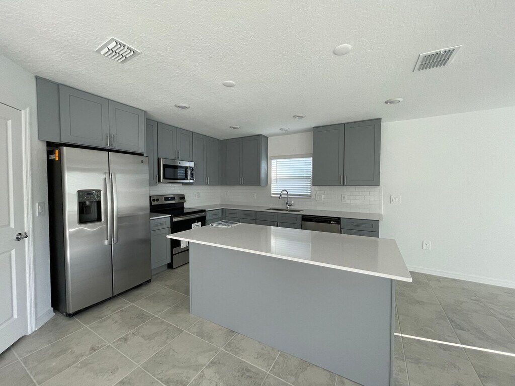 The home welcomes you into a large open living room, 4 bedrooms, 2 baths, living spaces and a garage for two cars. This property has amazing floor plans that includes High ceiling, Quartz countertops, tile floor, carpet in bedrooms, LED ceiling fixtures, and window blinds in each room. The kitchen and island overlook the family room. The family room leads to direct access to the backyard patio. There are also many closets with plenty storage space throughout as well. The house is well-designed and energy efficient with many upgrades. You have everything you need to make it a sweet home! The community is in a great location and easy access to Disney Theme Parks, Airport and major Florida highways. Lawn Care included Washer/Dryer Income 3x Rent Small pets accepted - pet fee applies App fee $80 per adult No prior evictions * some of the pictures have been virtually staged * property is unfurnished