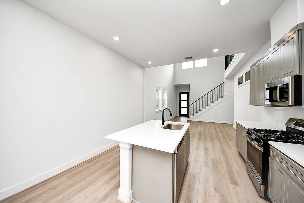 Luxury New Construction! This stunning home offers 4 spacious bedrooms,3.5 baths,and modern finishes throughout. The open-concept main living area features a bright dining space,a chef’s kitchen with 42” shaker cabinets,quartz countertops,stainless steel appliances,and a gas range,seamlessly flowing into the family room. The primary suite with an elegant bath is conveniently located on the first floor,along with a secondary bedroom with its own full bath and a half bath for guests. Upstairs,you’ll find two generously sized bedrooms,a full bath,and a versatile game room. Large windows bring in natural light,while energy-efficient features keep utility costs low. A cozy backyard with privacy fencing provides the perfect retreat. Located close to major highways,shopping,and dining,this home combines comfort,convenience,and style—perfect for today’s lifestyle. MLS# 42202139