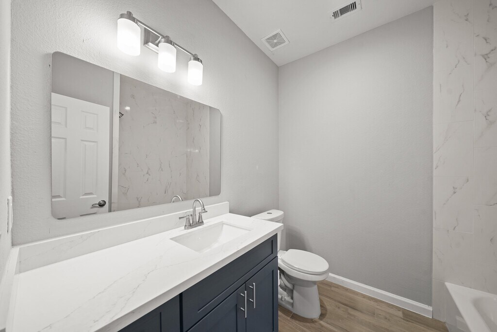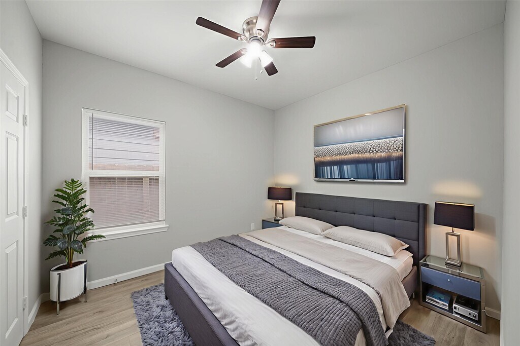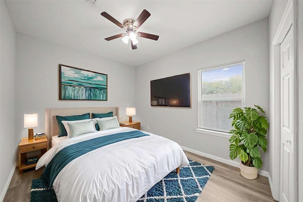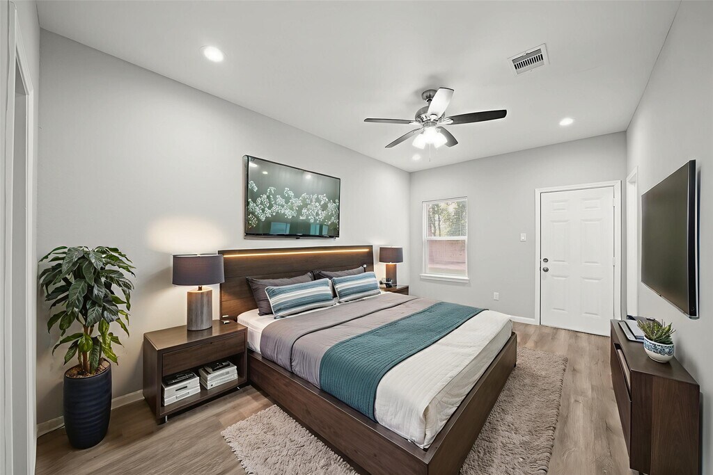 This 2,511sqft duplex offers modern design,durable finishes,and strong rental potential. A rare oversized fenced backyard with tall trees provides space for entertaining and pets,while the wide driveway allows for extra parking. Inside,tall ceilings and natural light complement wood-look tile in common areas,vinyl flooring in bedrooms (no carpet),and a kitchen featuring Calacata quartz countertops,white cabinetry,and a bold blue island. Bathrooms include Carrera marble showers and brushed nickel fixtures. Features include a Ring Doorbell,exterior motion-sensor lights,Hardiplank siding,and a 10-2-1 Builder Warranty. Catering to the Medical Center,NRG Stadium,Houston Rodeo and more,this duplex is a rare find in a thriving area of Houston. MLS# 83102541