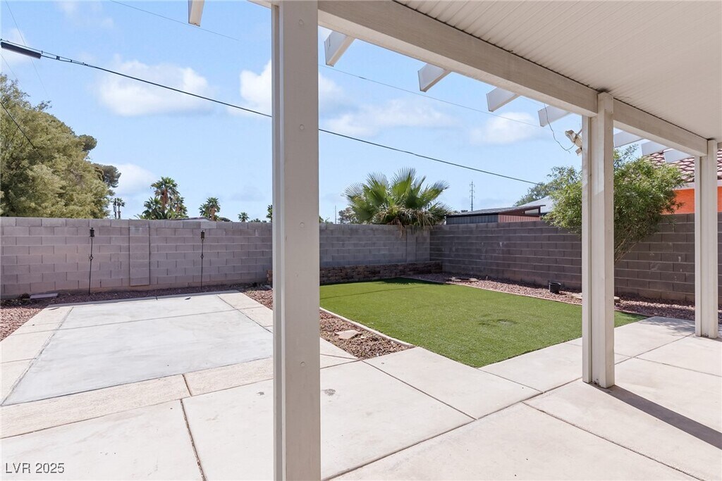 Move-In Ready 4-Bedroom Home with No HOA! Discover this beautifully updated 4-bedroom, 3-bath home perfectly situated in a quiet cul-de-sac—just minutes from freeways, shopping, UNLV, top schools, and the Las Vegas Strip. Step through the gated courtyard and double glass front doors into a bright, open interior featuring soaring ceilings, a cozy fireplace, and two-tone paint throughout. The modern design includes a blend of wood laminate, tile, and new carpet flooring, plus freshly painted stair rails for a crisp, contemporary look. The spacious primary suite is located on the main level, providing privacy and comfort with dual sinks, a separate shower, and a luxurious Jacuzzi tub. Upstairs, you’ll find three additional bedrooms. The backyard is built for low-maintenance enjoyment with desert landscaping, turf, a fully covered patio.