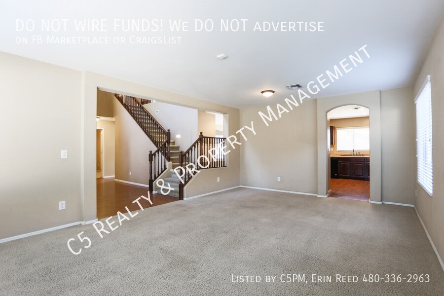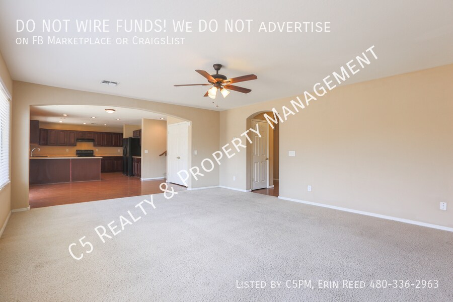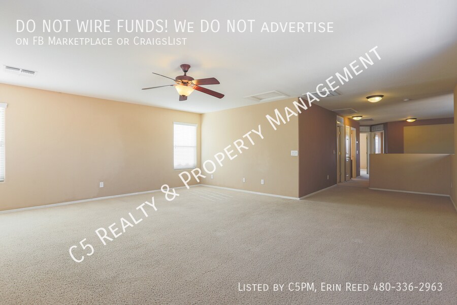 Don't miss this incredible 4 bedroom / 2.5 bathroom single-family home with a three-car garage in Maricopa! This spacious home features carpet and laminate hardwood flooring, ceiling fans, a loft, and plenty of storage space. The kitchen comes complete with a pantry, breakfast bar, and appliances including an oven, refrigerator, and a dishwasher! Washer/dryer included. Work/study from home in your private den/office! The primary bedroom includes dual closets plus a private bathroom with a separate shower/tub and dual sink vanity. Enjoy sunny Arizona in your private fenced-in backyard with a covered patio, pavers, and desert landscaping! Contact us to see this home today! Pets only accepted on owner approval. Lease terms and conditions apply. All information is believed to be accurate but is not guaranteed. Changes may have occurred since photographs were taken and square footage is estimated. Furthermore, prices and dates may change. Applicants should verify all information prior to executing any agreements.