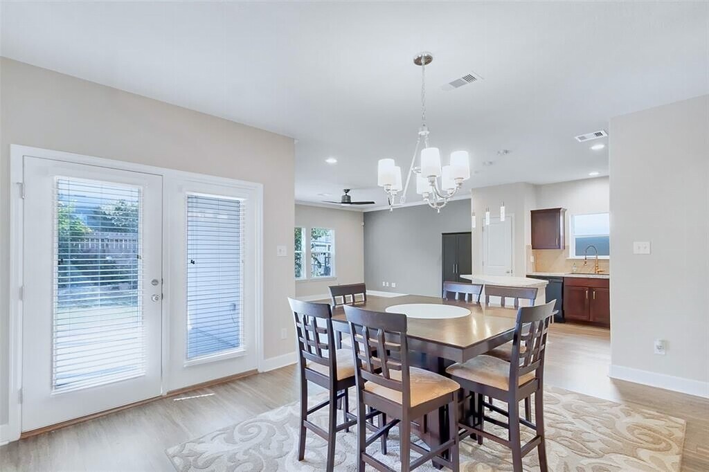 Welcome to this stunning 4 bedrooms/2.5 bath home with updated light fixtures! Enjoy the open floor plan,abundant natural light,and New luxurious Vinyl planks throughout the whole house - No Carpet! The kitchen features an island,elegant countertops,modern fixtures,and stainless steel appliances. The primary bedroom includes an ensuite bathroom and multiple walk-in closets. Three additional bedrooms with nice sized closets share a spacious full bath. The fenced backyard is perfect for relaxation and entertainment with flowers,trees,and a covered patio. The community park offers a covered pavilion and playing fields. Conveniently located near Houston downtown and Heights. Refrigerator,washer,and dryer are included! MLS# 66927848