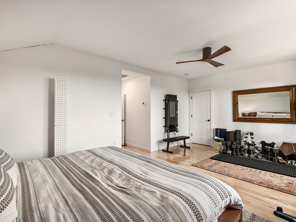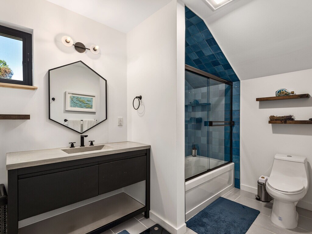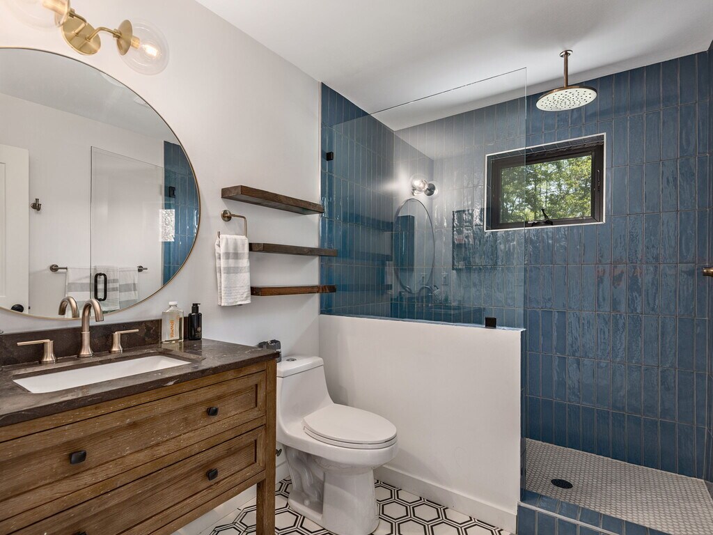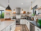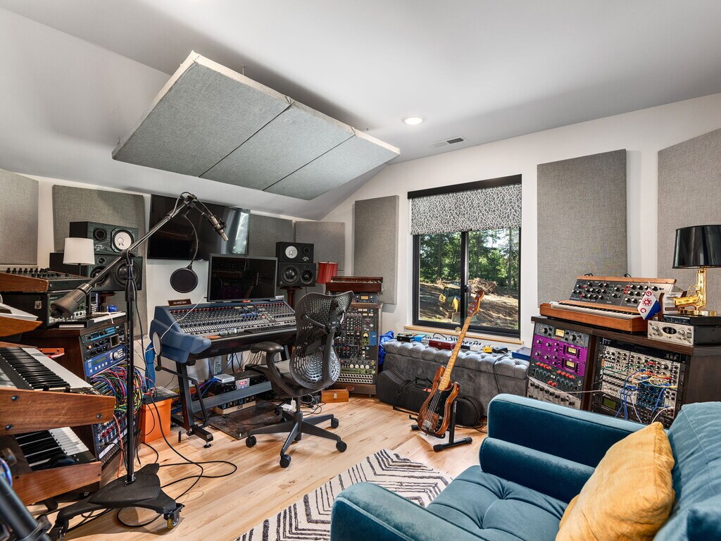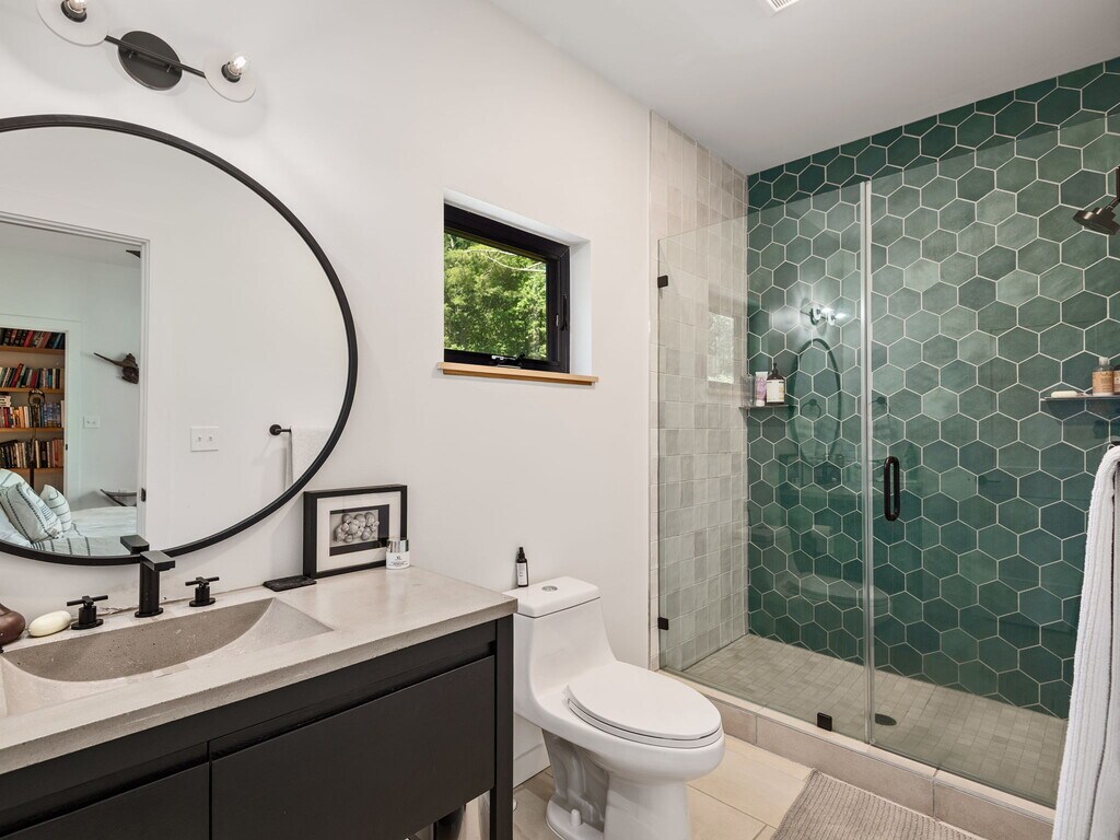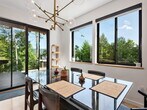 Discover a rare mountain retreat in Mills River, perched on nearly an acre in a quiet, private road community of modern Green Certified/ENERGY STAR homes. Surrounded by wildlife, apple trees, blueberry, and blackberry bushes, seasonal wildflowers, and no-mow landscaping, this fenced backyard offers privacy and low-maintenance living. *This house is un-furnished. This home blends wellness, sustainability, and high-end design. It features low-VOC finishes, a whole-house water filtration system, and an advanced HEPA air system for optimal indoor air quality. Recently refinished hardwood floors and fresh interior paint give the home a fresh, like-new feel. The open-concept main level includes a spacious kitchen, dining, and living area with premium designer fixtures, a first-floor bedroom with ensuite bath and deck access to mountain views, and a convenient half bath. Upstairs, the primary suite offers a luxurious ensuite and large closets, complemented by another full bedroom with bath access and an additional guest/bonus room. The finished lower level with separate driveway and entrance is perfect for a private studio or in-law suite. A large, deep deck captures sweeping year-round mountain views, ideal for entertaining or relaxing. Additional features include 220V Tesla/electric vehicle charger wiring, 220V sauna outlet on deck, a whole-house generator (2023), and ample storage throughout. Designed by a renowned interior designer from Lenny Kravitz’s New York design firm, this home combines luxury, sustainability, and comfort across three full floors.