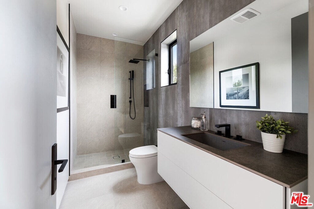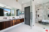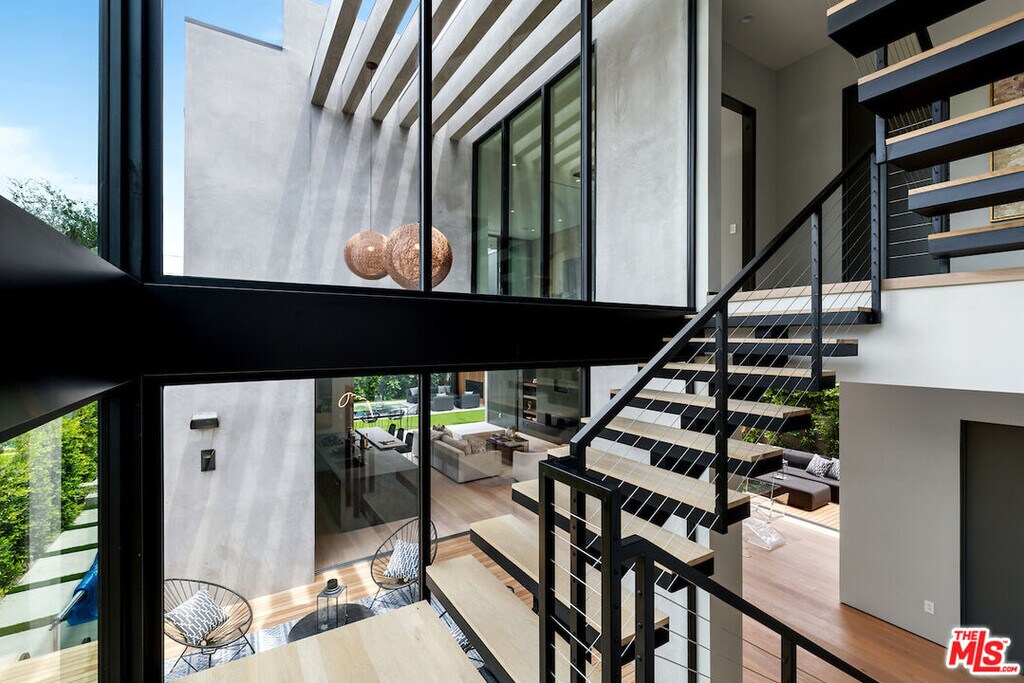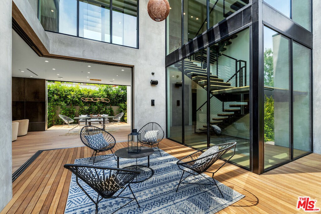 Gated architectural residence designed for the discerning buyer. Enter through a grand pivot door into an inviting home thoughtfully finished with rich wood elements and expansive second-floor and rooftop decks totaling approximately 1,500 additional square feet, offering sweeping views of the Los Angeles skyline and Hollywood Hills. The interior features white oak floors, Spanish tile accents, custom imported Italian vanities, and a chef's kitchen with an oversized island and counter seating that opens seamlessly to the family room and out to the pool, spa, cabana, and deck. The dining room opens to a private lounge deck, while a full suite on the main levelideal as an office or guest suitealso enjoys deck access.The primary suite showcases a striking white oak accent wall and a spa-like bath with a freestanding soaking tub and a tiled shower with dual shower heads. Two additional en-suite bedrooms feature private balconies. Additional features include crestron home automation, alarm and security camera systems, and mature. Centrally located in Beverly Grove, just minutes from Beverly Hills and some of the city's best restaurants and shopping! MLS# 26638139