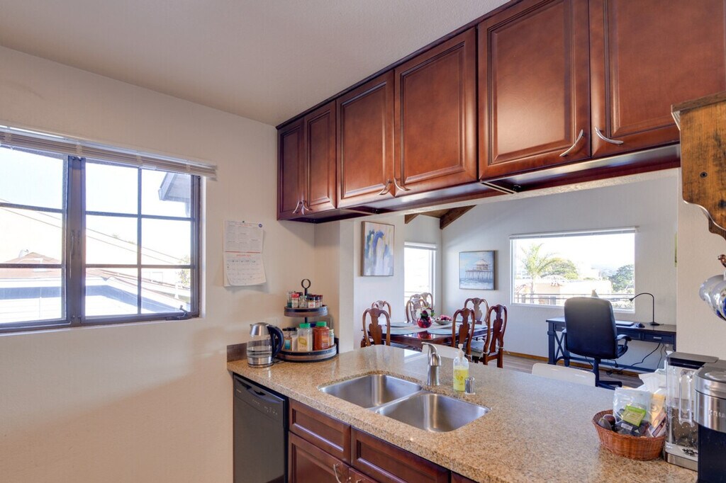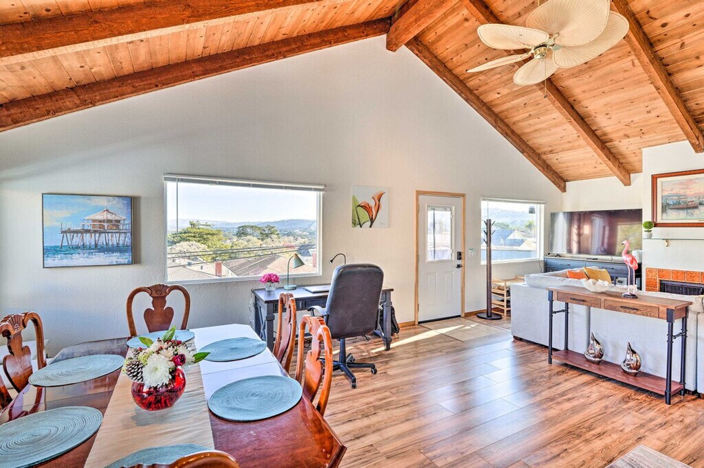 The advertised rate of $4,965/month is the lowest available price, based on a 30 day(s) stay with a move-in date of January 20, 2027. Rates vary depending on the duration of stay, season, and other parameters. For exact pricing and additional pricing components, please visit our website and enter your desired move-in and move-out dates. The rate is applicable when billed upfront; it can be higher if billed in multiple payments. Experience the coastal wonders of the Monterey Bay area when you book this second-floor apartment just steps from downtown Monterey! This 3-bedroom, 2-bathroom vacation rental offers the ideal crashing spot after days of surfing at Del Monte Beach, experiencing Old Fisherman's Wharf, or snapping photos at Pescadero Point. Note that outdoor stairs are required to access the unit, which may be difficult for guests with limited mobility. Feel at home in this beach bungalow. You'll adore the beachy feel of this hideaway, complete with a fully equipped kitchen, a Smart TV, a balcony with bay views, and alluring bedrooms for a restful night's sleep. The apartment features a deck, a patio heater, a private balcony, beach chairs, beach towels, and a beach umbrella. Enjoy the Smart TV, wood-burning fireplace, desk workspace, wet bar, dining table, vaulted ceilings, ceiling fans, and board games. The fully equipped kitchen has breakfast bar seating, a microwave, a Keurig coffee maker, an electric kettle, spices, a blender, a toaster, cooking basics, dishware, and flatware. Other amenities include complimentary toiletries, a hair dryer, keyless entry, free Wi-Fi, central heating, and a washer and dryer. Parking is available in the carport for one vehicle, and free street parking is available on a first-come, first-served basis with a provided permit. This apartment is pet-friendly with a $200 fee. Treat your family to a hassle-free trip to the Golden State when you stay at this convenient apartment, located just a few blocks from beaches, downtown Monterey, and the wharf. Smoking, events, parties, and large gatherings are prohibited. Additional fees and taxes may apply. A photo ID may be required upon check-in. [SI]