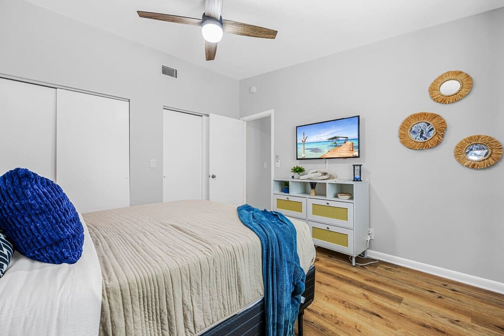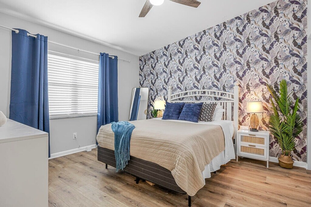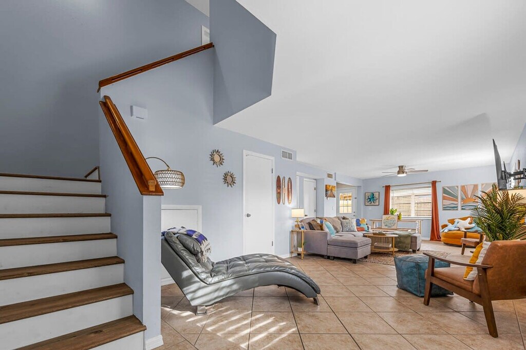 Welcome to your beachside escape in Cocoa Beach! This 2-bedroom, 2-bathroom townhome is just steps from the beach. Inside, you’ll find a cozy living area with comfy seating and a dining area perfect for family meals. The kitchen has everything you need for easy meal prep. With its perfect location, you'll be within walking distance of all the best spots Cocoa Beach is home to! Centrally located in Cocoa Beach, this 2-bedroom, 2-bathroom townhome offers the perfect blend of coastal boho charm and modern convenience with just a short walk from the beach. The townhome features three bedrooms with king and queen beds, including the primary suite with a private bathroom and vanity area. The kids will love to hang out and relax in the kids room on the comfy bunk beds. In the heart of the home, you'll find a modern, fully stocked kitchen—perfect for cooking everything from breakfast to dinner. Step into the living area, where a cozy sofa and large flat-screen TV invite you to unwind. The dining area and back patio are ideal for hanging out or enjoying a quiet evening enjoying the breeze. For those who need to stay connected, high-speed internet access is available throughout the property. Enjoy additional comforts like a dedicated workspace for business and beach essentials including chairs, an umbrella and towels for your perfect beach day. While we love all furry friends, only dogs are allowed at this property, with a fee of $100 per pet, per stay. Right in the heart of Cocoa Beach, this townhome offers a prime spot for exploring everything on foot, bike, or even a golf cart. Step out the door and you're moments away from beachside cafes, unique boutiques, vibrant bars, and tasty food. Walk through the amazing murals by local artists and listen to the occasional live music. Everything you need for a true Cocoa Beach experience is just a leisurely stroll away. Sunbathing, swimming, surfing, and beach volleyball are just a short walk away, and you might even catch a rocket launch while you're here. Take a walk to downtown Cocoa Beach, with so many options for restaurants, bars and shops, you can count on leaving your car parked during your whole stay. Or go on a short drive to the Kennedy Space Center to witness the history of NASA or visit the Brevard Zoo, approximately 25 minutes away for an unforgettable animal experience. This also makes a great spot for a pre and post cruise destination. Guests will have full access to the entire property, ensuring privacy and comfort throughout their stay. Our digital locks let you arrive and check yourselves in, but we’re here if you need us. Message us on the app if you need anything during your stay. For urgent matters, call the number provided. To ensure a comfortable start to your stay, we provide an initial stock of essentials like paper towels, toilet paper, tissues, coffee pods, creamer, sugar, light cleaning supplies, garbage bags, sponges, and dish soap. If you need additional supplies during your stay, please plan to replenish them as needed. Mailbox access is not available for guests. All reservations require either a refundable security deposit or the purchase of a damage waiver. Enjoy additional comforts like a dedicated workspace for business and high-speed internet access is available throughout the property.