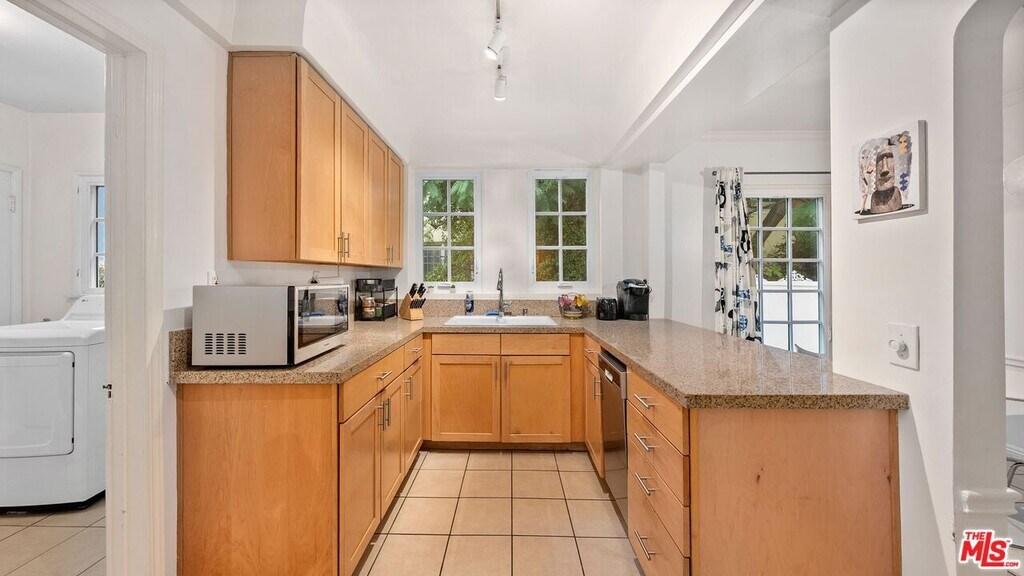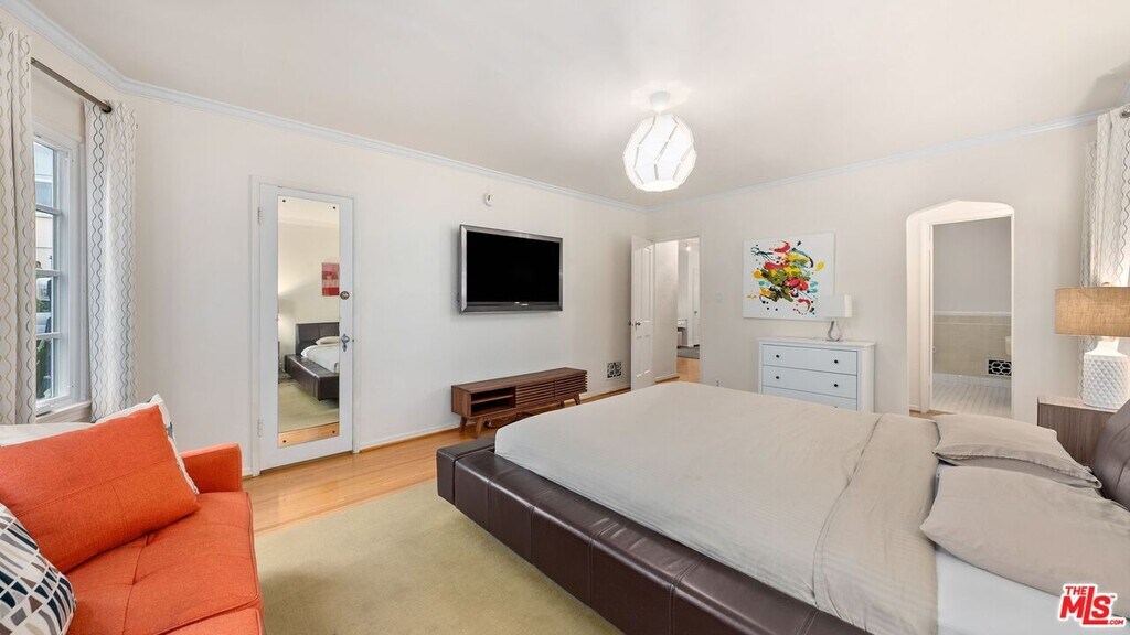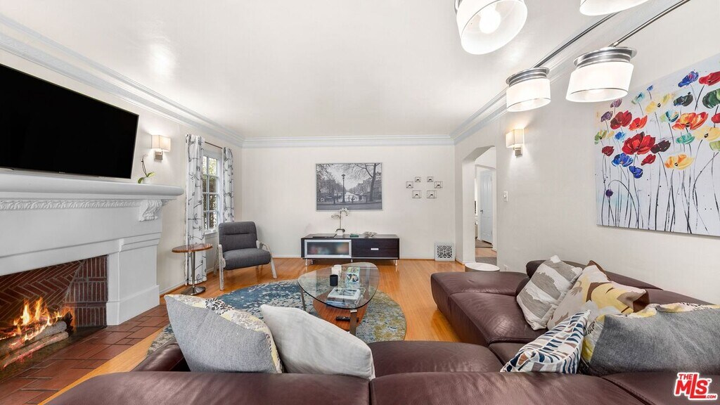 Fully Furnished - Classic Spanish Lower Unit - AVAILABLE STARTING FEB.15TH - 1-5 MONTHS RENT IS $7500. Experience timeless Spanish charm with thoughtful modern upgrades in this spacious lower unit of a classic 1930s duplex, situated on a quiet, tree-lined street in the heart of Beverly Grove / Fairfax. The residence offers 3 generously sized bedrooms and 2 full bathrooms, tastefully updated with stylish fixtures. A large, sunlit living room features arched windows, original moldings, and a decorative fireplace. The formal dining room is ideal for entertaining or can easily function as a work-from-home office. The updated kitchen includes quartz countertops, stainless steel appliances, and a breakfast nook. Additional highlights include a dedicated laundry room with in-unit washer and dryer, original hardwood floors, high ceilings, arched doorways, and preserved period details throughout. Central heat and air conditioning provide year-round comfort, while brand-new dual-pane windows enhance energy efficiency and noise reduction. The property includes a private garage with two parking spaces (tandem or side-by-side) and access to a shared backyard, perfect for outdoor dining or relaxation. Prime location walking distance to The Grove, Melrose Avenue, Pan Pacific Park, Erewhon, Trader Joe's, Whole Foods, and some of Los Angeles' best restaurants, cafes, and shopping, with convenient access to West Hollywood, Mid-Wilshire, and Beverly Hills. MLS# 26636111