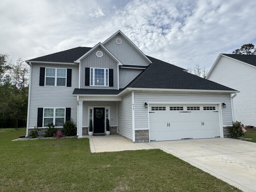 Welcome to this spacious and inviting 4-bedroom, 2.5-bathroom home located on Nantucket Trail in the growing coastal community of Sneads Ferry. Conveniently positioned near local shopping, dining, schools, beaches, and the back gate to Marine Corps Base Camp Lejeune, this home offers both comfort and accessibility. Inside, you'll find a bright and open floor plan designed for everyday living and effortless entertaining. Multiple gathering spaces include both a family room and keeping room, each featuring its own electric fireplace, creating a warm and welcoming atmosphere throughout the home. The kitchen and main living areas flow seamlessly, making hosting guests or spending time with family easy and enjoyable. Upstairs, the spacious primary suite offers a tray ceiling, dual vanity, separate soaking tub, and walk-in shower, creating a private retreat at the end of the day. Each bedroom is generously sized and includes its own walk-in closet, providing excellent storage and flexibility for family, guests, or home office needs. This home combines space, functionality, and location in one exceptional opportunity.