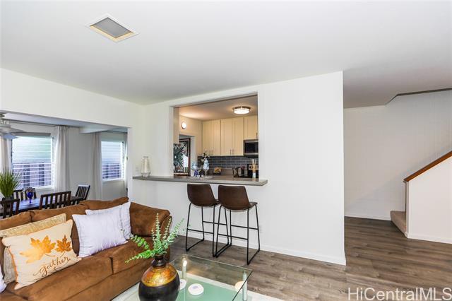 PRESTIGIOUS & rarely available Kuapa Isle! This inviting 4 bedroom 3 bath townhome features a covered lanai upon entry with a tranquil rock garden to sit & enjoy with your morning coffee. The stunning living room, smart breakfast nook off to the side and an additional enclosed lanai beyond the living room will leave you pleasantly surprised. The updated kitchen is equipped with SS appliances and includes a functional pass thru bar to the living room. The entire unit was freshly painted, includes luxury vinyl flooring throughout the downstairs and brand new carpets installed on the stairway and 3 bedrooms upstairs. The fourth bedroom downstairs has its separate entry fronting the lovely rock garden & covered patio. It also includes a full bath and a separate washer/dryer area. This well maintained home is ready for the renter that is looking to move in NOW. Furniture is not included in rental. Amenities include Marina access, spacious swimming pool, fantastic recreation room/ clubhouse, basketball court and much more. Well managed community staff, guarded entry, excellent maintenance of grounds, pet friendly complex makes for a truly appealing neighborhood.