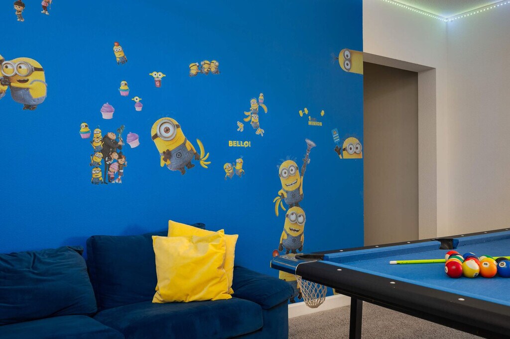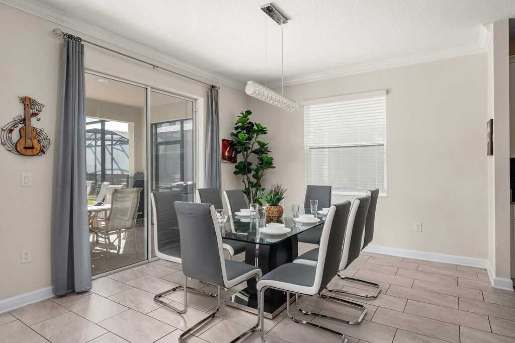 Looking for a dream vacation destination? Feel at home in this unique and family-friendly villa in Kissimmee. This villa features 6 spacious bedrooms, 5 bathrooms, and large living areas. This villa features a large full kitchen with stainless steel appliances, spacious indoor and outdoor dining areas, a game room (loft), free washer/dryer, and outdoor pool loungers. Enjoy free access to the community water park and amenity center/clubhouse. There is also a private pool with the option to add heat. If you would like to add pool and spa heating to your reservation, please let us know in advance, and we can coordinate to set that up for you. The cost for this amenity is $35 per day of stay, which will be invoiced separately. Located at Storey Lake Resort in Kissimmee, Florida, this villa offers a perfect blend of comfort, luxury, and adventure. The Warbird Air Museum is 3.6 mi away, SeaWorld Orlando is 4.9 mi away, Disney's Boardwalk is 5 mi away, and Lakefront Park is 5 mi away. There is absolutely no smoking and no drugs allowed inside the home or elsewhere on the property. We can accommodate a maximum of 14 guests at any given time. No third-party bookings are allowed, unless otherwise agreed upon in written form. Only the number of guests indicated on the reservation are allowed to stay overnight on-premise, unless otherwise agreed upon in written form. The number of vehicles on the property should never exceed two per reservation. Please respect the neighborhood and neighbors and be considerate while socializing outdoors after 10 pm and before 8 am. Also, keep excessive noise to a minimum during this time. No fireworks of any kind are allowed. Firearms are not allowed on the property, unless kept locked in a vehicle. Please take out the trash and dispose of it properly per instructions upon departure. We reserve the right to terminate a reservation without refund and/or pursue monetary fines if guests are found to be in violation of any of these rules. Check-out time is 10 am. In the event you stay beyond the original scheduled check-out time, you may incur a fee of up to $300. [SI]