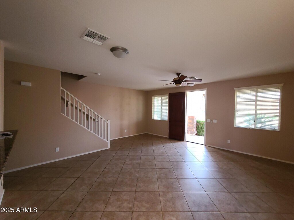 Great Gilbert location! 3 bedrooms upstairs 2.5 bath. Half bath down stairs with living/kitchen,open floor plan. Side patio,2 car garage. Upstairs washer/dryer hook ups. HOA maintains front yard-low maintenance! Master has walk in closet with double sinks.