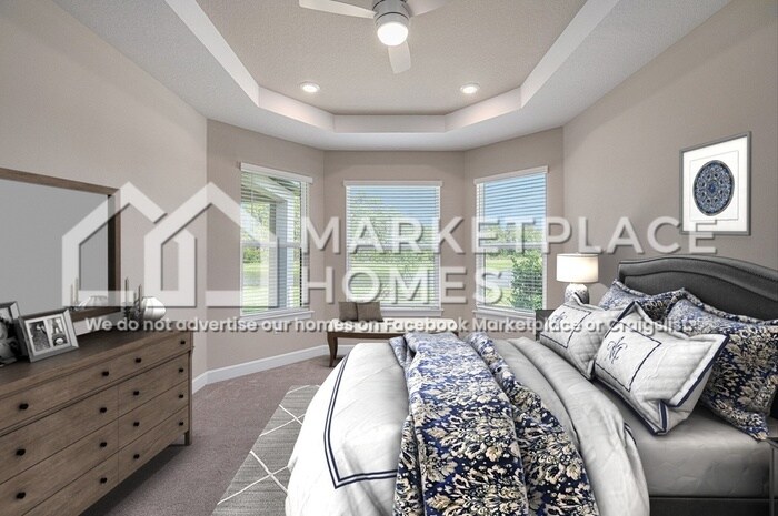 Light and bright waterfront home ready for move-in! Offering a flowing open floorplan with neutral finishes and gorgeous wood-look tile flooring, this is the blank slate you have been searching for to quickly become your new home sweet home. The spacious eat-in kitchen is fully equipped with sleek stone countertops, stainless steel appliances, and an oversized island with sightlines into the living room so your home chef never has to miss a moment. Easily extend your living space outdoors to the large, covered patio with serene water views perfect for living or dining al fresco! The primary bedroom boasts an elegant tray ceiling, bay window, walk-in closet, and luxurious en-suite bathroom with everything you need to relax and recharge after a long day. Private bathrooms in both the secondary bedrooms guarantee that every member of the household can live comfortably. Don’t miss your chance to call this newer built home your own, schedule a showing today! HOA application fee of $100 with a 55+ age restriction in place. No pets. BEWARE OF SCAMMERS. Only apply for this home through We DO NOT advertise on Facebook Marketplace or Craigslist, and we will NEVER ask you to wire money or pay in cash. The price listed is based on a 12-month lease for an approved applicant. Prices and special offers are valid for new residents only. All leasing information is believed to be accurate; however, prices and special offers may change without notice and are not guaranteed until the application has been approved. Additional fees may apply, including a lease administration fee, damage waiver fee, and pet fees (where applicable). This property allows self guided viewing without an appointment. Contact for details.