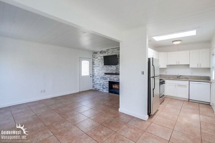 Modern 3Bdm 1Ba Duplex Home in Desirable Point Loma Heights Neighborhood! This updated residence features a bright living area with tile flooring, a stylish stone-accented fireplace, and large windows that bring in abundant natural light. The kitchen offers white shaker-style cabinetry, granite countertops, and stainless steel appliances including a range/oven, refrigerator, built-in microwave, and dishwasher. All three bedrooms feature vinyl plank flooring and mirrored sliding closets, while the bathroom includes a tub/shower combo with sliding glass enclosure. Additional highlights include uncovered driveway parking space and community laundry room. Close to local shops, dining, beaches, and easy freeway access. Monthly Flat Charge for Water/Sewer/Trash. Tenant Pays All other Utilities. Pets with approval via process. This property allows self guided viewing without an appointment. Contact for details.
