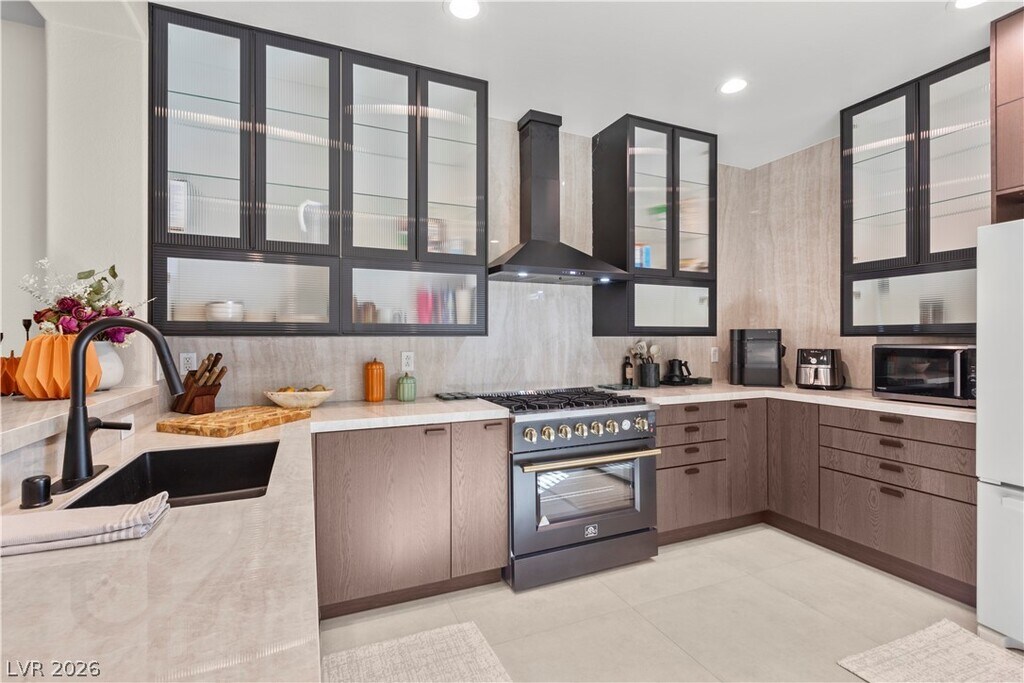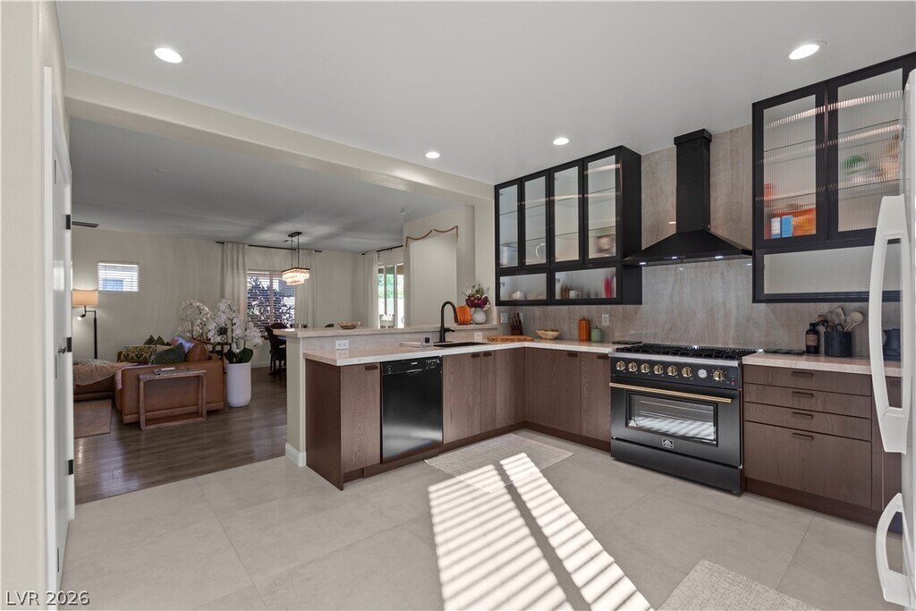 Reimagined single-story in Southern Highlands, 1,874 sq ft on the largest oversized corner lot for a single story in the community with only one neighbor for added privacy and extra parking. Nearly everything is new, including a designer kitchen with 36†Italian Forno range, satin black hood, fluted glass soft-close cabinetry, oversized pantry, Italian porcelain counters, backsplash and tile flooring, modern black fixtures, ceramic undermount sink and updated appliances. Fresh paint, updated lighting, gas fireplace, large ceiling fan, tinted dual-pane windows with solar screens and upgraded insulation enhance comfort. New front and back landscaping with smart irrigation. Expansive backyard is pool-ready and ideal for entertaining with extended patio cover and included furniture. Spacious primary suite with dual sinks, spa tub, walk-in shower and custom L-shaped closet. Quick I-15 access for easy California commute near dining, shopping and Southern Highlands Golf Club.