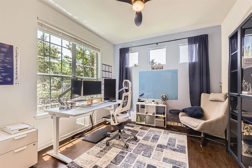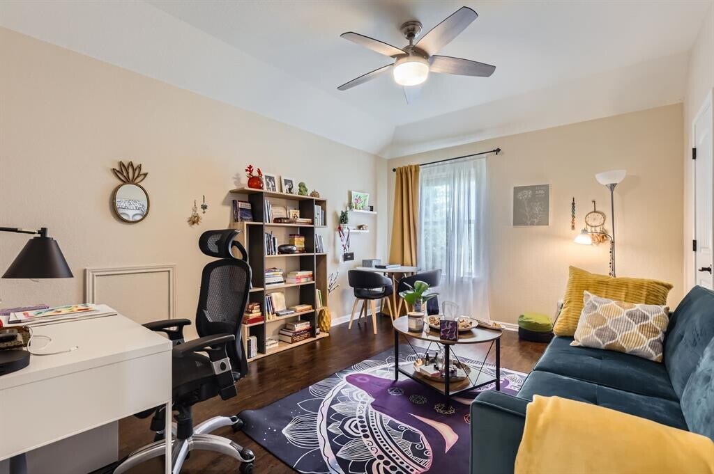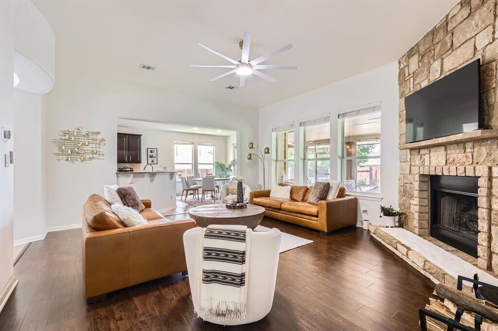 Located in the most convenient pocket of Teravista, this home offers the perfect blend of comfort, style, and thoughtful updates—all in one of Round Rock’s most vibrant and accessible communities. This home is the epitome of pride of ownership! Soaring ceilings, a graceful curved staircase, and high-end finishes set a welcoming tone from the moment you step inside. The first floor features a spacious primary suite and a dedicated home office, making daily life both functional and comfortable. The layout offers excellent distribution of space, creating an airy feel that’s ideal for both quiet moments and lively gatherings. The owners have poured so much love into this home—maintaining it meticulously and enhancing it with modern touches throughout. You’ll find smart switches, designer lighting, a brand-new water heater, and a recently replaced roof. Every detail has been carefully selected and beautifully maintained. Step outside to what truly makes this home one of a kind: a serene backyard oasis. The covered patio has been upgraded with epoxy flooring and full screening, creating a bug-free space to relax, dine, or entertain—all with a perfect view of the sparkling blue pool. It’s peaceful, private, and made for year-round enjoyment. Tucked into a prime spot in Teravista, you’ll enjoy quick access to new restaurants, local parks, major roads, and everything that makes Round Rock such an easy place to love. This home offers an abundance of space both inside and out, blending luxury and comfort in perfect harmony. It’s more than a place to live—it’s a canvas for memories, ready for the next chapter. Welcome to 4349 Green Tree Dr!