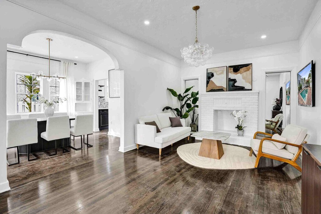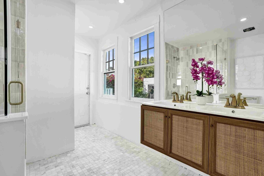 Exquisite 1925 Mission Revival estate in the prestigious Old Northwood Historic District. This distinguished residence blends historic charm with modern luxury,minutes from downtown,the Intracoastal,and Palm Beach. The main house offers 2 bedrooms,2 bathrooms,9-foot ceilings,original wood floors,and elegant arched openings. Upgrades include Monogram appliances with gas range,Miele laundry,and spa-inspired bathrooms. A dedicated office/Zoom room provides a private workspace. The detached guest house has 1 bedroom,1 bathroom,pecky cypress ceiling,full kitchen,and laundry. A heated pool and spa anchor a resort-style courtyard,ideal for sophisticated entertaining and indoor-outdoor Palm Beach living. MLS ID R11150554