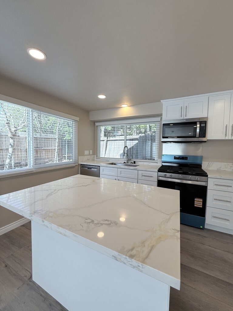 Welcome to 435 Anacapa Circle, a beautifully remodeled 4-bedroom, 2.5-bathroom home offering 1,996 square feet of living space, ideally situated on a quiet cul-de-sac in one of Newbury Park's most desirable neighborhoods. This home features a brand-new kitchen with modern cabinetry, a spacious island, and updated appliances, including a new range--perfect for both everyday living and entertaining. Throughout the home, you'll find waterproof vinyl flooring, contemporary recessed lighting, and ceiling fans that create a bright and comfortable atmosphere in every room. Both full bathrooms have been tastefully remodeled with stylish tile shower and updated vanities, adding a touch of modern elegance. Step outside to a backyard that opens directly to a lush greenbelt, providing a peaceful, private setting and a natural extension of your outdoor living space. Residents of this highly sought-after community enjoy exceptional HOA amenities, including an adult pool, children's pool, spa, tennis courts, basketball courts, clubhouse, and playground--offering a true resort-style lifestyle just steps from home. Conveniently located near top-rated schools, parks, shopping, dining, and with easy freeway access, this home combines comfort, style, and an unbeatable location.