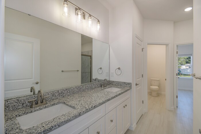 Welcome home! This beautiful new construction home with a fully fenced in back yard is move-in ready and has all the features you are looking for! Inside you'll be greeted by tall ceilings, modern finishes and abundant natural light. The rooms are spacious and bright with neutral colors, offering a comfortable and clean space to relax. Cook family favorites in the modern kitchen providing stainless steel appliances, granite countertops, shaker cabinets, pantry storage and a center island with bar top seating. The generously sized primary suite is on the first floor and showcases a spacious walk-in closet, dual vanities with granite counters, and stand up shower with frameless glass enclosure. Upstairs showcases a spacious loft perfect for gathering and entertainment. Located just over 3 miles from the Villages, youll be a close distance from shops and dining, Spanish Springs Town Square, breweries, cafes, Villages Elementary of Lady Lake, and Lake Griffin State Park. Spend the weekends checking out local events and festivals, reel in a fresh catch on the pier, or catch a show at the theater. Schedule your showing today to see this beautiful new construction home in Lady Lake! To Schedule a showing please visit our website at or call our office at . Contact us to schedule a showing.