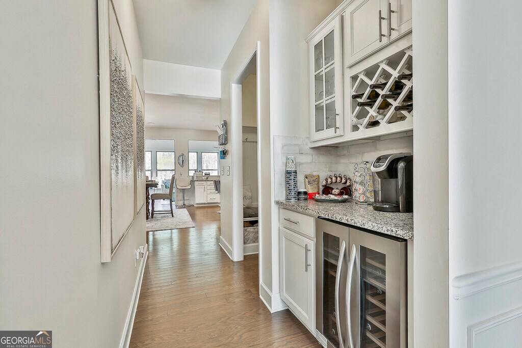 One of the best on the market right now! Avail approx March 1st. Handsome brick & stone 2 story with 5 bedrooms including a guest or in-law suite on the main. Home is located in Rivercrest, a sought after swim / tennis neighborhood. Wonderful decorator touches throughout & beautifully maintained! Hardwood floors in most of the main floor including a great cook's kitchen with breakfast area, separate island, all appliances (wall oven, microwave, gas cooktop, vent hood, DW, French door refrigerator with ice & water & disposal) pantry closet plus a separate butler's pantry with a beverage/ wine refrigerator & lots of storage. Also on the main is a large formal dining room with coffered ceiling & wainscoting, a sunroom area off the kitchen which could make another great dining area, a large family room with gas log fireplace & a separate quiet office or library through the French doors. The carpeted in-law suite is complete with it's own bath & walk-in closet. Upstairs is an open loft (perfect for games), the laundry room (with washer & dryer included), & 4 good sized bedrooms including the master suite with an oversized custom shower, deep soaking tub, dual vanities, & his & hers walk-in closets. Plus many thoughtful extras - a mudroom with built-ins, motorized shades, recessed lighting, 2 blinds, circulating pump on the hot water heater for fast hot water & located on a quiet private street with easy access to Atlanta & the airport - miss all the PTC traffic! Excellent Fayette County schools too. Please note that yard service may be added for an additional price." MLS ID 10682682