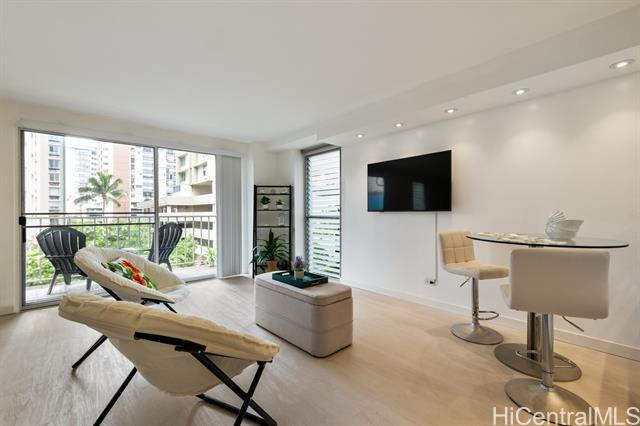 Welcome Home to this Beautiful, Move in Ready unit in Waikiki. This 1 bedroom, 1 bath unit in a sweet & simple boutique building is nestled into a central location in Waikiki and it includes One covered parking ! Newly renovated with luxury vinyl planks, tankless water heater system, new in-unit washer & dryer, new pipes and electrical wiring. The open floor plan is light and spacious with everything you need at your doorsteps. Steps from the beach, restaurants and shopping. HIGHLIGHTS: Includes WiFi, water, sewer, GET, 1 covered parking stall and fully furnished. $25.00 App. Fee