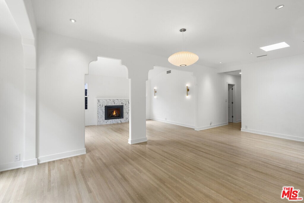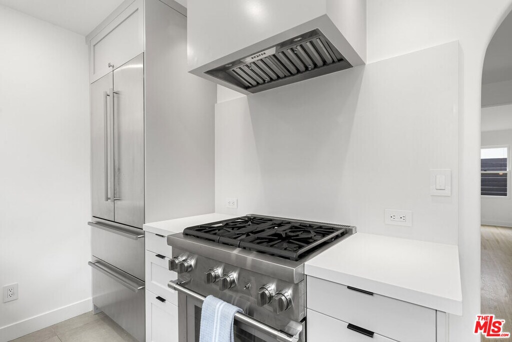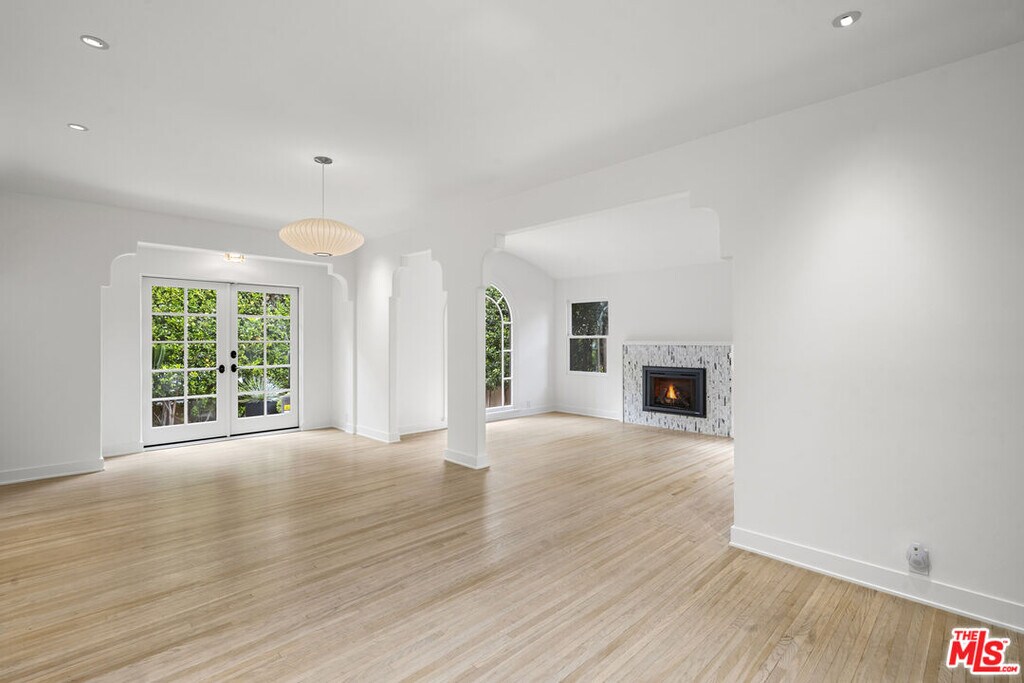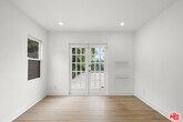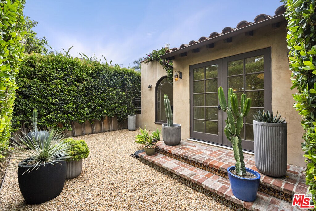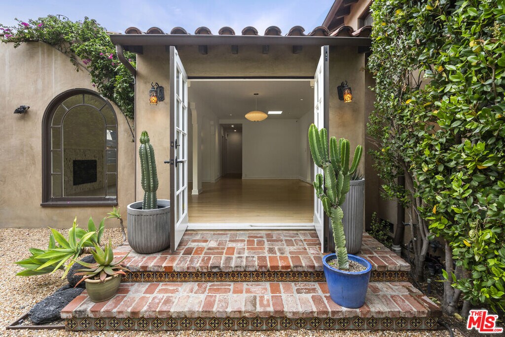 Quintessential Spanish with a modern twist, 3 bedrooms & 2 baths situated in prime West Hollywood West location (south of Rosewood at end of cul-de-sac) - exterior features include a Spanish tower entry, a carved wooden door, ornate tile work, soft arches, lush greenery allowing for ultimate privacy, a pebble stone courtyard allowing for indoor-outdoor living and off street parking. Interior features include large open living spaces, including barreled ceiling in formal living room, custom archways, hardwood floors, oversized windows allowing for dramatic sunlit days and romantic evenings filled with ambiance, skylights, Kelly Wearstler wall sconces and fireplace backsplash. Galley kitchen includes custom cabinets, quartz countertops, large picturesque windows, stainless steel appliances, additional under-counter integrated refrigerator / cooler, ample storage / pantry space, Miele stackable washer / dryer located in laundry closet off of kitchen. Minimalism bathrooms, spacious bedrooms, recessed lighting throughout, french doors in living space and both rear bedrooms, ample built-in storage / custom closet spaces in all bedrooms, heated floors in primary bedroom ensuite, central A/C, and security system. The owner reserves access to the ADU + one (1) adjacent parking space at property rear when intermittently visiting California. Tenant has access to driveway for off street parking. No pets allowed. MLS ID 26793959