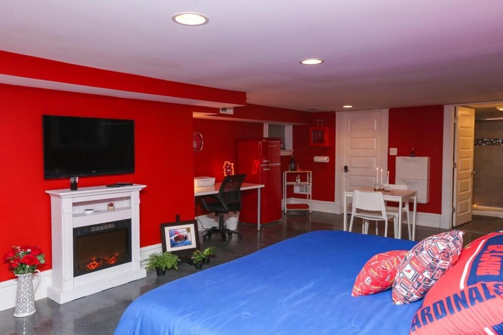 Perfect for a traveling medical professional! Walking distance to Barnes Jewish Hospital and Shriner's Hospital. 500 sq. foot basement suite features King size Tempurpedic Cloud Mattress with adjustable head/feet and massage, electric fireplace, workspace, 46" smart TV with digital antenna for local channels, cell phone charger, Wi-fi, Echo Dot, iron/board/steamer, luggage rack, dresser, and wardrobe. Bathroom: En suite guest bath with rainfall shower head. Guest Suite has a microwave, refrigerator, compact toaster oven and freezer. It does NOT have a kitchen or private main entrance. Suite door has lock. Laundry facilities on site. Check out our reviews: THINGS TO NOTE ABOUT THIS PROPERTY: Must be okay with dogs No marijuana smoking No pets or overnight guests Weekly housekeeping and laundry services are available at this property upon request for an additional fee. Laundry supplies, toiletries, and groceries are not included.