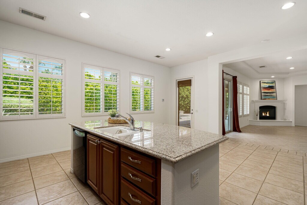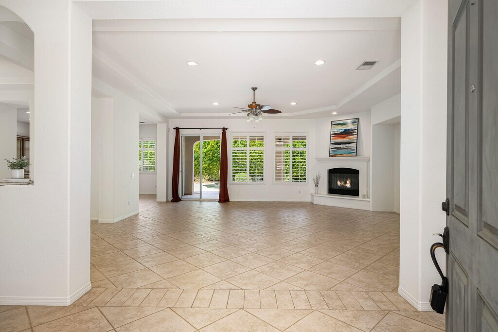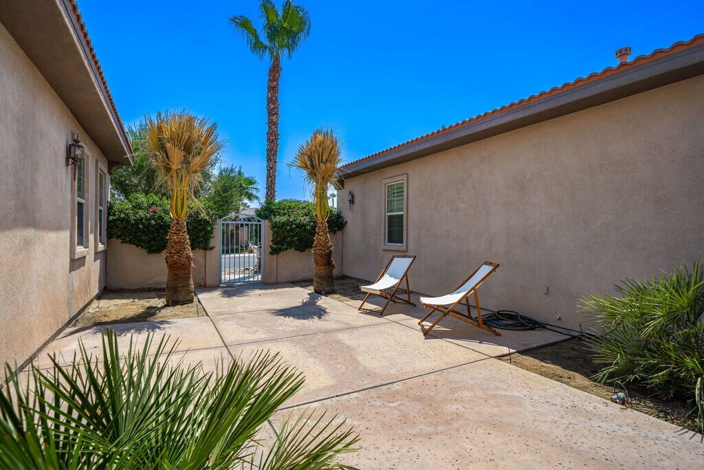 Welcome to this beautifully updated and spacious 5-bedroom,4-bathroom home located on a large private lot in one of La Quinta's most desirable neighborhoods. Freshly painted and move-in ready,this home offers the perfect blend of luxury,comfort,and functionality. Step inside to an expansive great room with a cozy fireplace,ideal for entertaining or relaxing with family. The gourmet kitchen features a large center island with bar seating,a charming breakfast nook,and flows seamlessly into the formal dining room perfect for hosting dinner parties or casual meals. The private backyard is a true oasis,featuring a stunning pool surrounded by mature hedges for ultimate privacy. New palm trees grace both the front yard and the welcoming courtyard,adding a resort-like touch. The primary suite is a peaceful retreat with direct slider access to the backyard and pool. The luxurious ensuite bath includes a soaking tub,walk-in shower,dual vanities,and an expansive walk-in closet. Two guest bedrooms feature private ensuite baths,while the remaining two share a well-appointed Jack-and-Jill bathroomâ'ideal for family or guests. Enjoy the community's beautifully maintained park,scenic greenbelt areas perfect for walking,biking,or exercising,and even a Bocce Ball court for added fun.