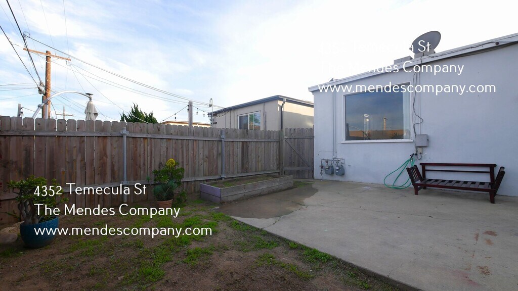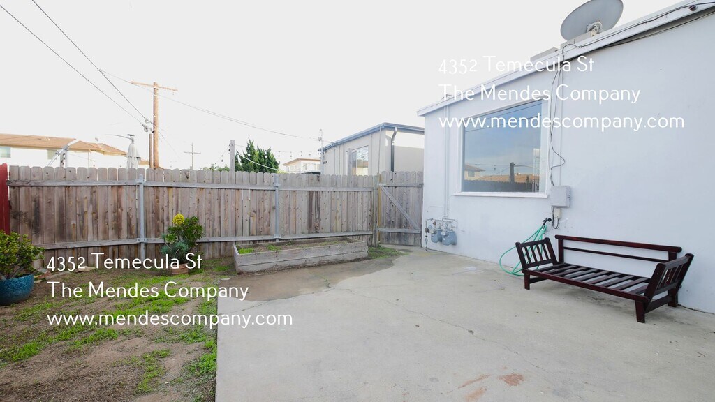 This lovely 3 bedroom/ 1 bathroom apartment home located in Point Loma features a spacious living room with new vinyl flooring throughout as well as beautiful wood ceilings, and a large private backyard! This home is a part of a small duplex, so you don't have anyone above or below you and comes with (1) assigned parking space. Located in the fantastic area of Point Loma Heights, right next to Ocean Beach! Point Loma is one of San Diego's best coastal locations for watching sunsets on the cliffs and exploring SoCal's coast! Head to Cabrillo National Monument to explore the historical lighthouse and capture stunning views of the coast, or hop on a boat in the marina to head out for some whale watching or deep sea fishing. Not to mention, Point Loma has some of San Diego's best at restaurants and bars in Shelter Island & Liberty Station! RENTAL DETAILS Lease Duration: 12 months Tenant Pays Utilities Such as: Water/Sewer, Gas/Electric, Cable/Internet, Trash Service Security Deposit: $2,000 Heating/Air: Gas Wall Heater Parking: (1) Onsite Parking Space Laundry: Laundry Hookups Only, Available for Compact Washer/Dryer Pet Policy: Small Dogs Only w/ Pet Deposit and Pet Rent $25/month SHOWINGS TO BOOK A SHOWING: NOTE: If you are asked to enter your social security number, it is because you did not pass the ID scan or credit card identification check. Our software will only take government issued state Identification Cards with clear, well-lit photos. We must take strict security measures to verify your identity in order to avoid scams. APPLICATIONS Do NOT apply if you have not toured the inside of the rental home in-person. There are no exceptions. If you apply prior to touring the inside, your application will be denied. Please feel free to call our office ahead of applying to see how many applications are pending. If you choose to submit an application, you agree to the terms and conditions of the application that state your $40.00 application fee is non-refundable regardless if someone ahead of you is approved. To apply, visit The Mendes Company website under “Property Management.” QUALIFICATIONS FOR THIS PROPERTY ONLY: The rental decision is based on these four combined factors: 1. Strong Credit History (no past or present accounts in collections, no charge offs, no debt settlements, no late payments, no negative credit items, etc.) 2. Positive Rental References (Paid on-time, no lease violations, no balance owed, etc.) 3. Gross Monthly Income (Proof that gross household income is at least 2.5 times the monthly rent.) 4. Your Lease Start Date (Looking to start the lease within 10 days of the listing available date.) **Guarantors/Co-signers are NOT allowed for this property. If you submit a Guarantor/Co-signer Application, the application fee will NOT be refunded.*** SCAM ALERT! The Mendes Company does NOT advertise rental homes or apartments on Craigslist or Facebook. Showings may only be scheduled on The Mendes Company website and no other way. Please call our leasing office prior to paying or sending money. We will never ask for payment via Zelle or Venmo. FAIR HOUSING COMPLIANCE The Mendes Company complies with all federal, state, and local fair housing laws and welcomes persons of all race, color, religion, nationality, sex, familial status, disability, sexual orientation, and gender identity. Great Location New Laminate Vinyl Plank Flooring On Site Parking Private Backyard