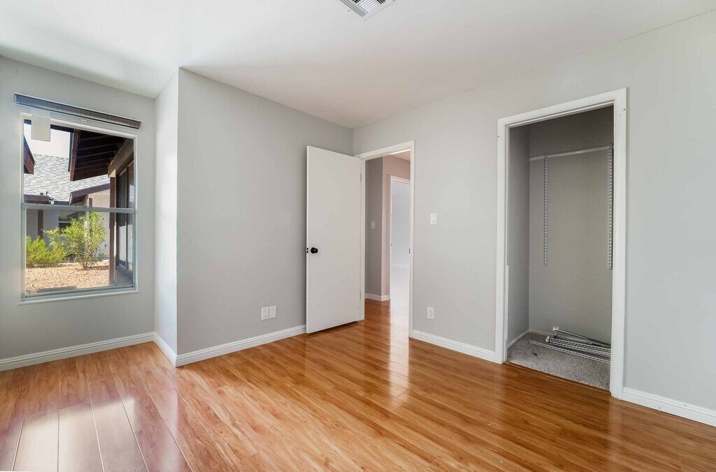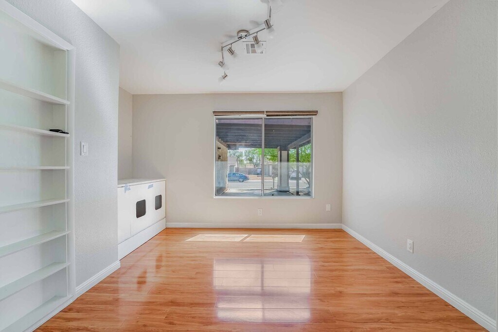 Discover this charming townhome in Spring Valley, featuring two bedrooms, a versatile den/office, and convenient amenities including a one-car garage with shelving and a carport. The home boasts wood-like laminate flooring throughout, complemented by sleek tile in the kitchen and bathrooms. The upgraded kitchen shines with custom cabinets, stainless steel appliances, and modern black hardware. The spacious master bedroom offers ample closet space, while both bathrooms are elegantly updated with luxury backsplashes, stylish hardware, and contemporary vanities. Enjoy a serene spacious backyard and the added convenience of a water softener in the garage. CHECK FOR APPLICATION STATUS: Allow one of our BCRG Rental Specialists to assist you in finding your next home for FREE! Black and Cherry Real Estate Group
