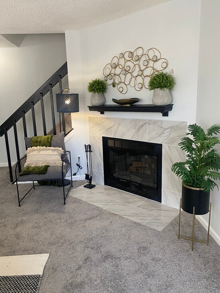 This super nice 3 bed, 2.5 bath condo, managed by owner, is light and bright. New kitchen and bathroom cabinets, countertops, floor, paint, carpet and appliances. This is the perfect place to live! The primary bedroom has a huge walk-in closet on the upper level along with another bedroom and a full bath. The main level offers the Living room, Fire place, kitchen, bathroom and dining that walks out to the private patio. Basement has a second primary bedroom with a large bathroom and spacious laundry room with plenty of storage. Assigned parking in front of unit. HOA and trash paid.