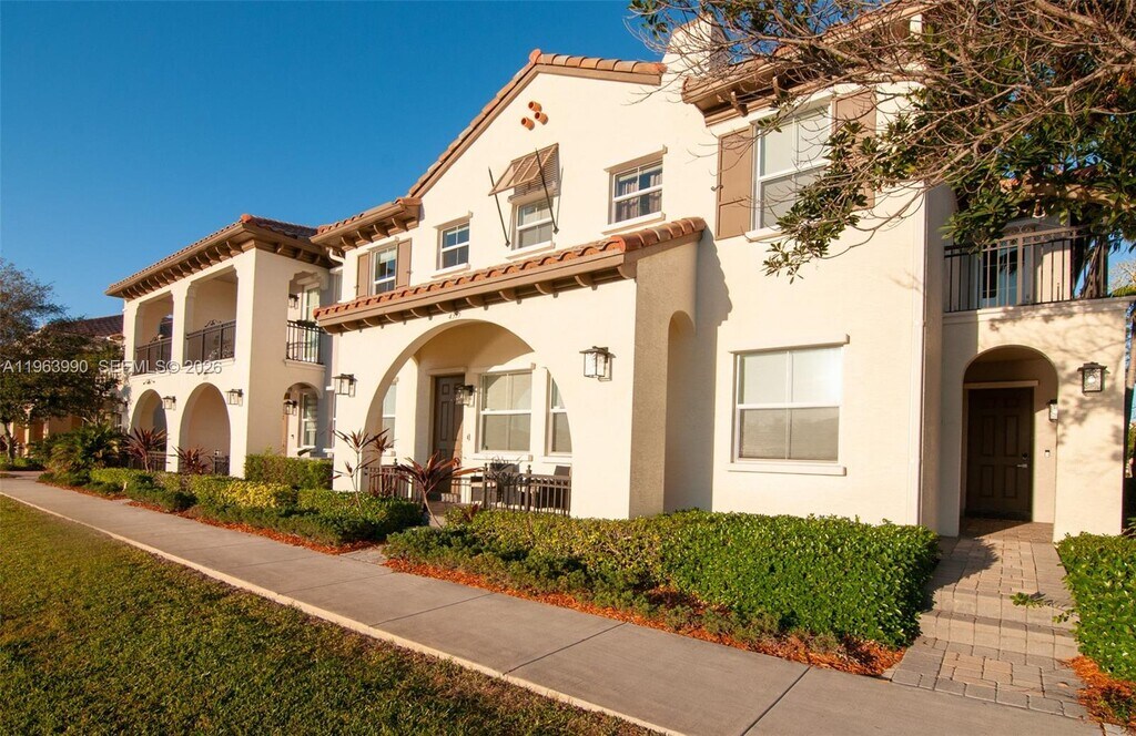 Spectacular corner unit townhome in the gated community of Monterra, This open concept Townhouse with 2 bedrooms and 2 bathrooms has a circular stair that leads you to a loft space,(ideal for an office or guest room) . This rental property makes you want to stay. It is super ample , has vaulted ceilings , laundry room, 2 car garage and a terrace right off the living space. The property has all IMPACT WINDOWS, impact garage door, a kitchen with a lot of cabinetry, the masters bedroom has a large ensuite bathroom with a walk-in closet, and the second bedroom has a separate bath. Monterra features a community pool, lakes, and walking paths for all residents.MOVE IN READY! IMPECCABLE! MLS # A11963990