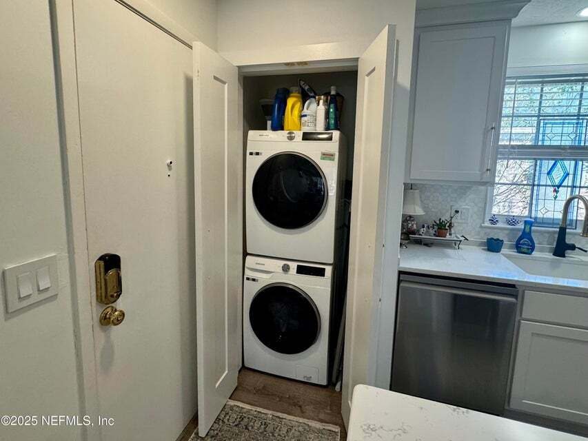 This beautifully updated 2nd level condo features 1-bedroom, 1-bath and offers approx. 690 square feet of comfortable, modern living. The open-concept kitchen flows into the dining and living areas, featuring luxury vinyl plank flooring and modern touches that create a bright, welcoming space. Step out onto your private balcony overlooking the peaceful courtyard. The bedroom includes a custom-built closet system for organized storage, with a stackable washer and dryer provided. Every detail of this condo has been thoughtfully designed with high-end finishes throughout. Residents can enjoy access to community amenities including a pool and clubhouse. Conveniently located off Roosevelt Blvd, this condo offers easy access to shopping, dining, and major highways. Water included in rent, $1,200 security deposit, No pets, available 12/1