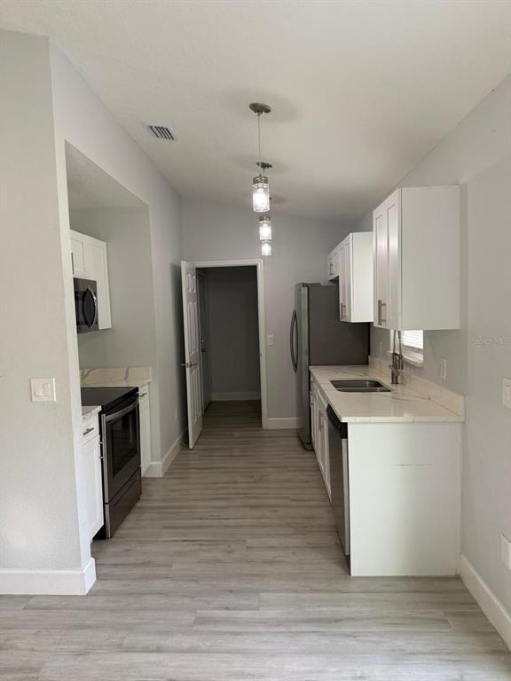 Beautiful 3-Bed / 2-Bath home in Rainbow Park,featuring 8' ceilings in the bedrooms and vaulted ceilings in social areas. Wood soft close cabinets are accompanied by stainless steel appliances and dishwasher. Upgraded finishes such as recessed lighting and ceiling fans make this a very desired home. Luxury vinyl plank flooring throughout. It seats on a 0.32-acre corner lot. Make your appointment now to tour this home. Don't wait long or it will be gone! MLS# S5141559
