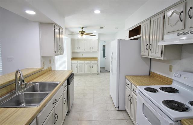 This residence offers 4 bedrooms and 2 full bathrooms, encompassing approximately 1,755 square feet of living space. The home features an inviting front porch leading into an open living and dining area with vaulted ceilings, wet bar and abundant natural light. The kitchen is comes equipped with a dishwasher, electric range open to a bay windowed breakfast nook, adjoining a second living area that includes a brick fireplace flanked by bookshelves and a wall of windows. The primary suite offers an en-suite bathroom with dual sinks and a walk-in closet. Three additional bedrooms, a full bathroom with dual sinks, and a spacious utility room with an extra sink complete the home. Additional features include a fenced backyard with pergola covered patio and a storage shed. Refrigerator, washer & dryer are also included for your convenience. Don't miss your opportunity to lease this beautiful home! Call NOW! Owner must approve all pets. 12 month lease term only.
