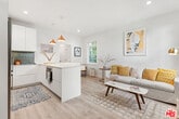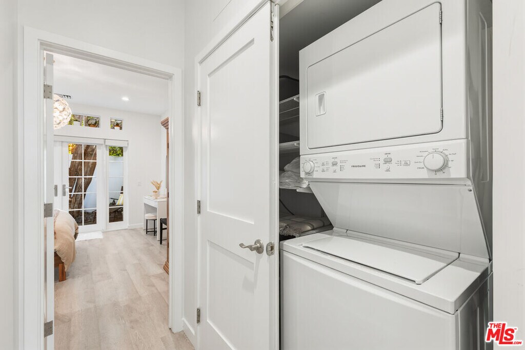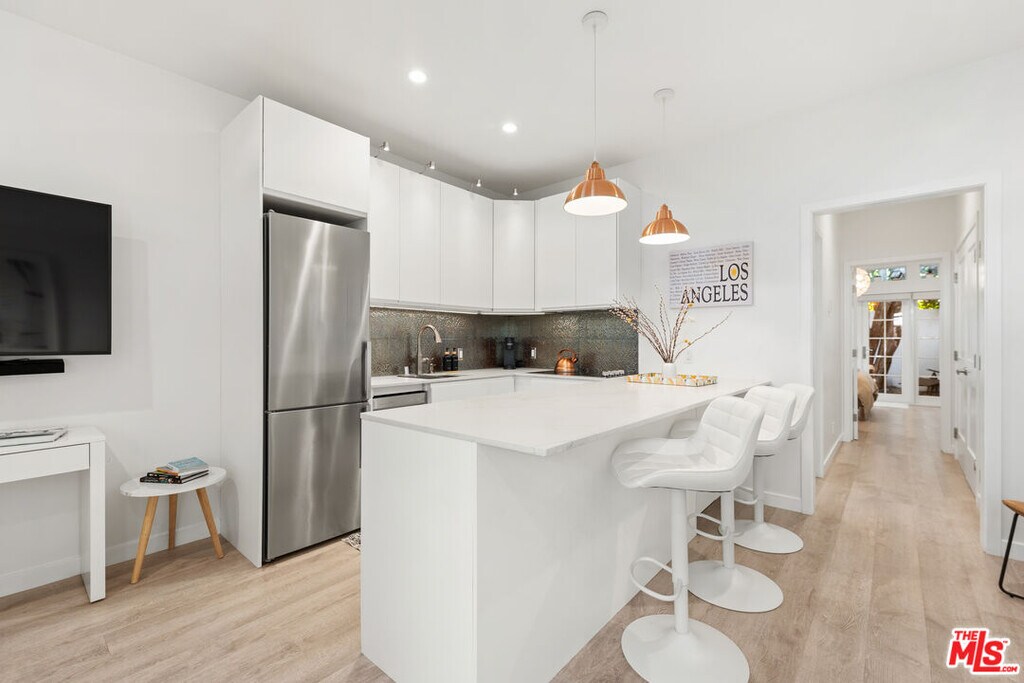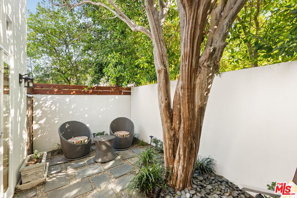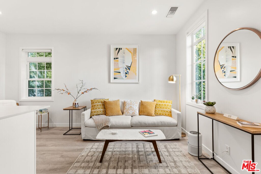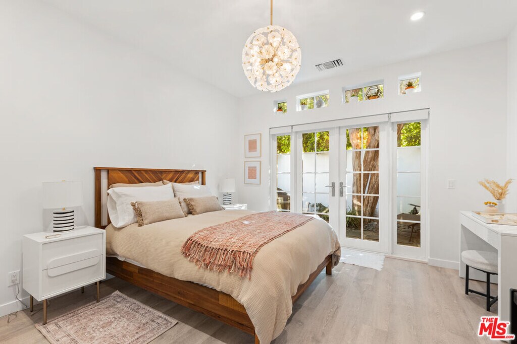 Tucked within a quiet residential enclave in the Melrose district, this beautifully designed fully furnished one-bedroom, one-bathroom Spanish contemporary house offers refined living with exceptional privacy. Sunlight pours through expansive windows and French doors, creating a bright, airy interior that seamlessly connects to a tranquil private garden patio shaded by mature trees. The open-concept living space is thoughtfully appointed with upscale furnishings, wide-plank flooring, and a modern kitchen featuring quartz countertops, stainless appliances, and a central island - perfect for both everyday living and entertaining. The serene bedroom retreat includes a queen bed, workspace, and elegant French doors opening to a private Zen-inspired outdoor lounge. Additional amenities include washer/dryer, central heat and air conditioning, high-speed internet, keyless gated entry, and multiple outdoor relaxation areas, all curated to provide a comfortable, turnkey living experience. Ideally located moments from the shopping, dining, and creative hubs of Melrose Avenue, The Grove, and Pacific Design Center, with convenient access to Hollywood, Downtown Los Angeles, and Santa Monica. A sophisticated, private retreat in one of Los Angeles' most vibrant and central neighborhoods. MLS# 26667665