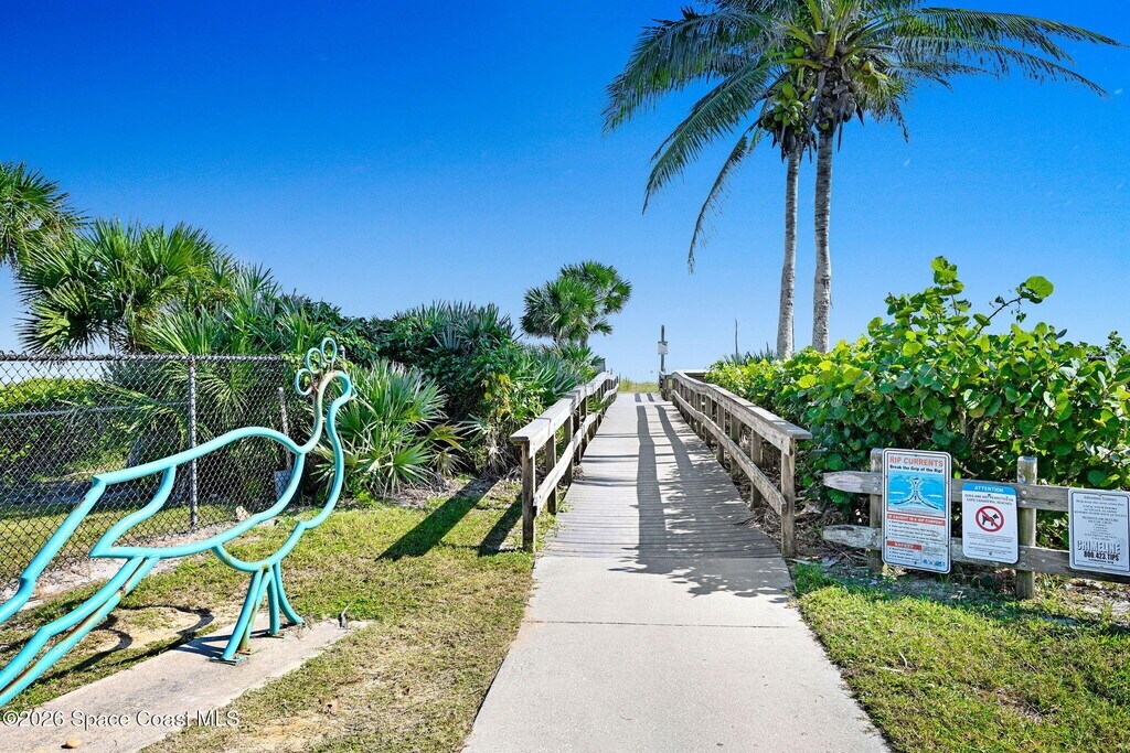 AVAILABLE MAY 13TH! Recently,remodeled,townhouse across street from the beach/ocean .End unit provides very private fenced yard with lovely screened porch for outdoor living all year round.2 PRIMARY suites,each with new private baths & walk in closets. 2 assigned parking spaces plus plenty of guest open parking! Lots of storage. Ideal for roommates to share,executive transferees,or family. Easily sleeps 5. New kitchen,2.5 baths (1/2 bath 1st floor),freshly painted,new carpet,& fully furnished too! Washer & dryer included. PETS FRIENDLY. 2 PETS OK. LOCATION,LOCATION,Close TO BEACH LINE(528) TO ORLANDO,PORT CANAVERAL,CRUISE SHIPS,RESTAURANTS 5 MINUTES AWAY. DISNEY 1.5 HR AWAY.THERE IS LOTS TO DO FOR EVERYONE ON THE QUIET SHORES OF CAPE CANAVERAL,FL. MLS # 1075476