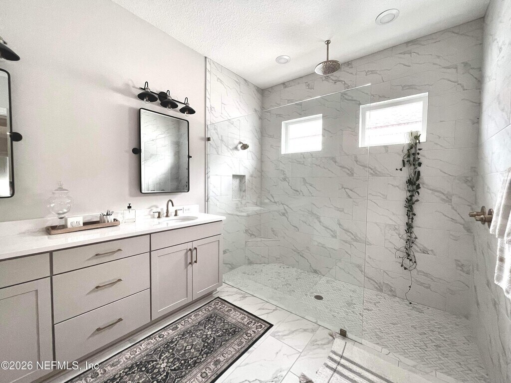 Beautiful 4BR/3BA one-story home with 3-car garage on a private preserve lot with fully fenced backyard. Located in one of St. Johns County's fastest-growing areas and zoned for the newly opening SilverLeaf K-8 school. Enjoy a family-friendly lifestyle within walking distance to the amenity center,newly opened second amenity center,shops,restaurants,pools,splash park,playground,dog park,pickleball,and tennis courts. Inside features 10-ft ceilings,8-ft doors,open layout,and gourmet kitchen with 8.5-ft island,42'' soft-close cabinets,double ovens,French door refrigerator,dishwasher,gas cooktop,and large pantry. Spacious primary suite with dual-head rainfall shower. Guest suite with private bath. Retractable screened patio,oversized paver porches,tankless water heater,water softener,Rain Bird irrigation,and keypad entry. Dogs considered with approval. Listing agent is homeowner. MLS# 2141200