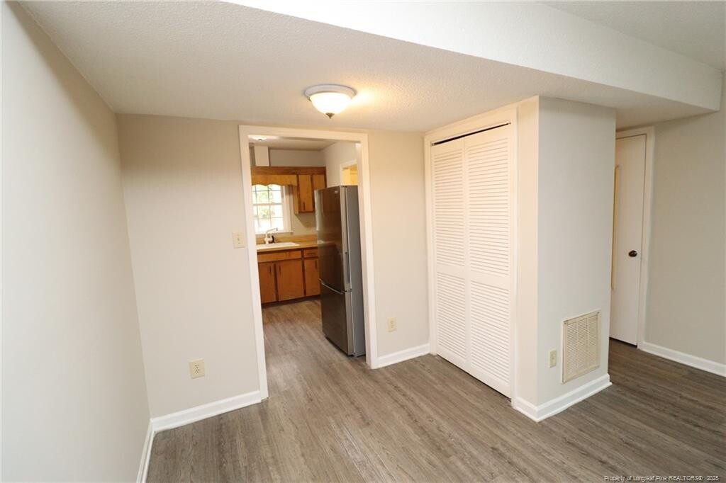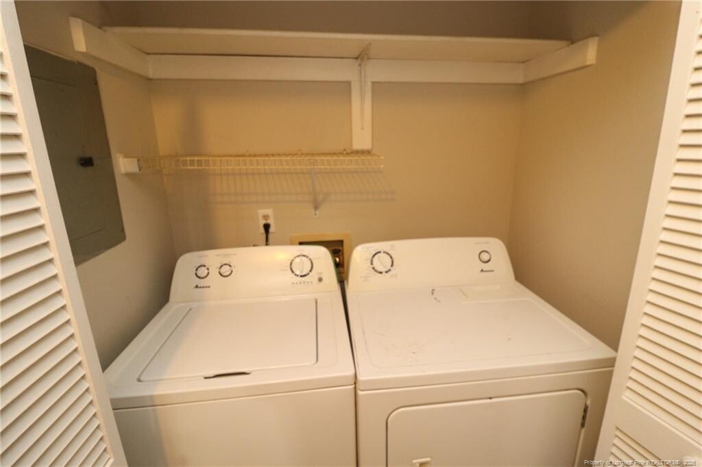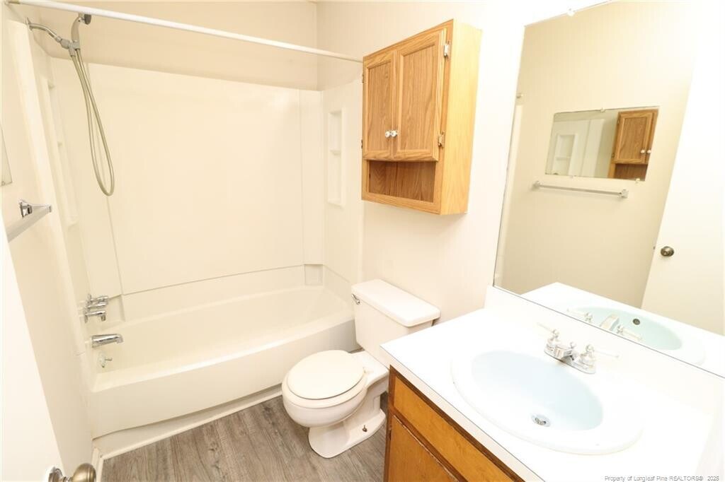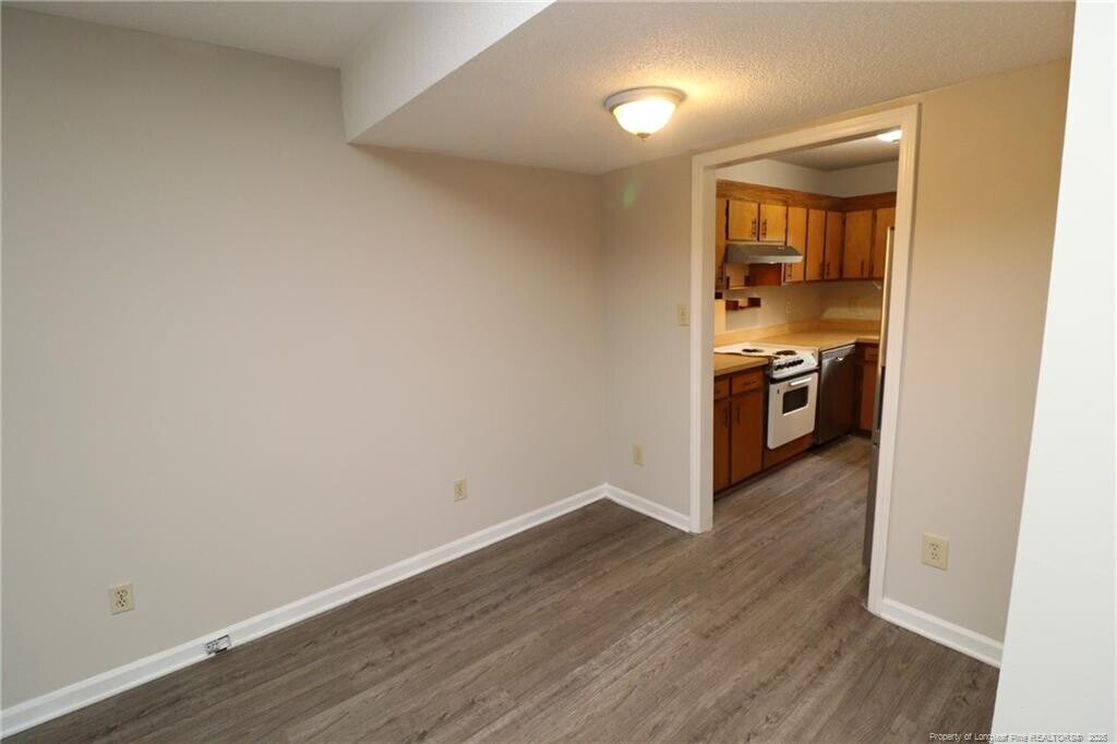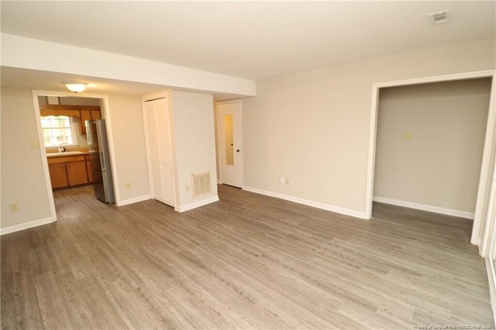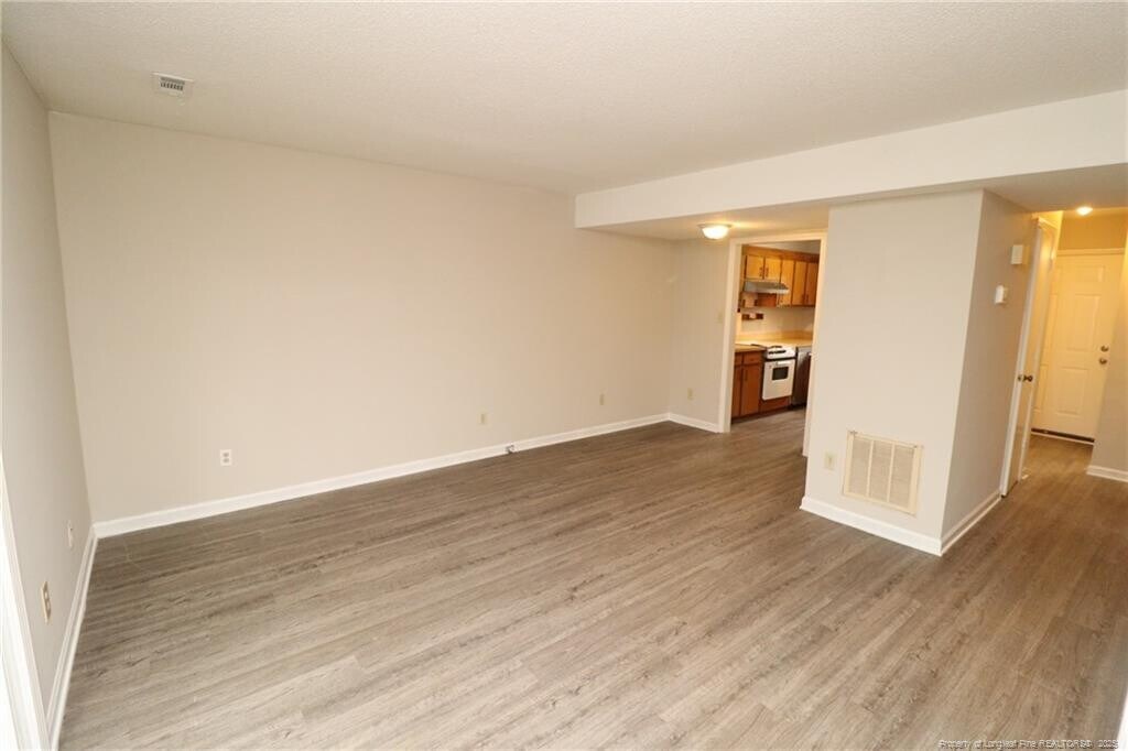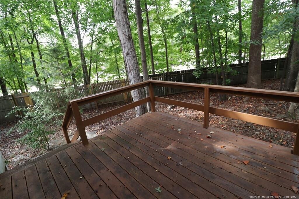 This affordable and immaculate townhome is nestled in the very heart of Cary and is sure to impress. An expansive, off-street parking area greets you upon arrival, while a covered front porch ensures you'll never be stuck outside in the rain unlocking the door again. Once inside, you'll find fresh, neutral paint throughout as well as beautiful, low-maintenance luxury plank flooring that graces the entire the first floor and really makes this home stand out! The foyer opens on the right to an efficient and attractive kitchen with solid wood cabinetry, a full suite of appliances and a double bowl stainless steel sink with a picture window above. Next, you'll enter a spacious, light-filled family room with an adjoining dining area, a design that makes furniture placement a breeze and direct access via a sliding door to a private rear deck overlooking a fenced-in yard with shade trees. Before heading upstairs, be sure to visit the tucked-away powder room as well as the laundry center with a full-size washer and dryer provided for resident's use. The second floor is home to both bedrooms; each are full of natural light with double windows, ample closet space and easy access to a full hall bathroom with a tub/shower, a built-in medicine cabinet and more.